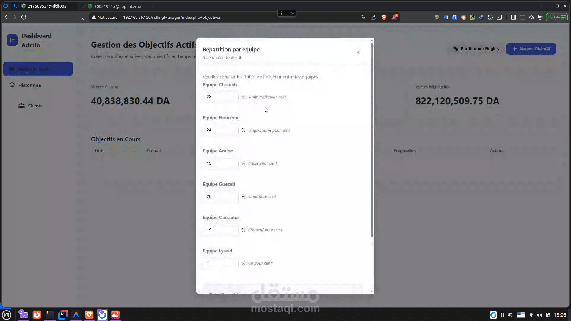 تقسييم الأهداف على الفرق و أعوان تجارة