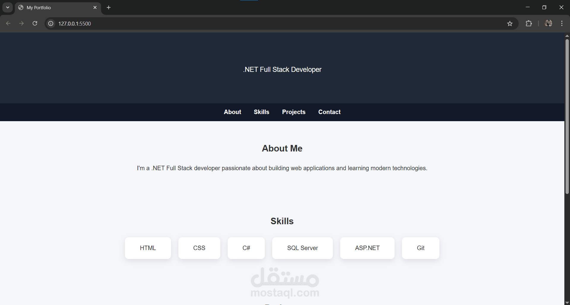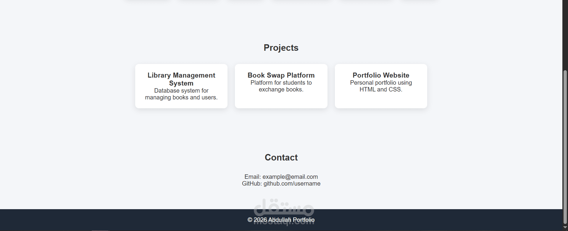 قمت بانشاء موقع Web باستخدام html , css لعمل potfolio خاص بس ووضع مهاراتي فيه.
