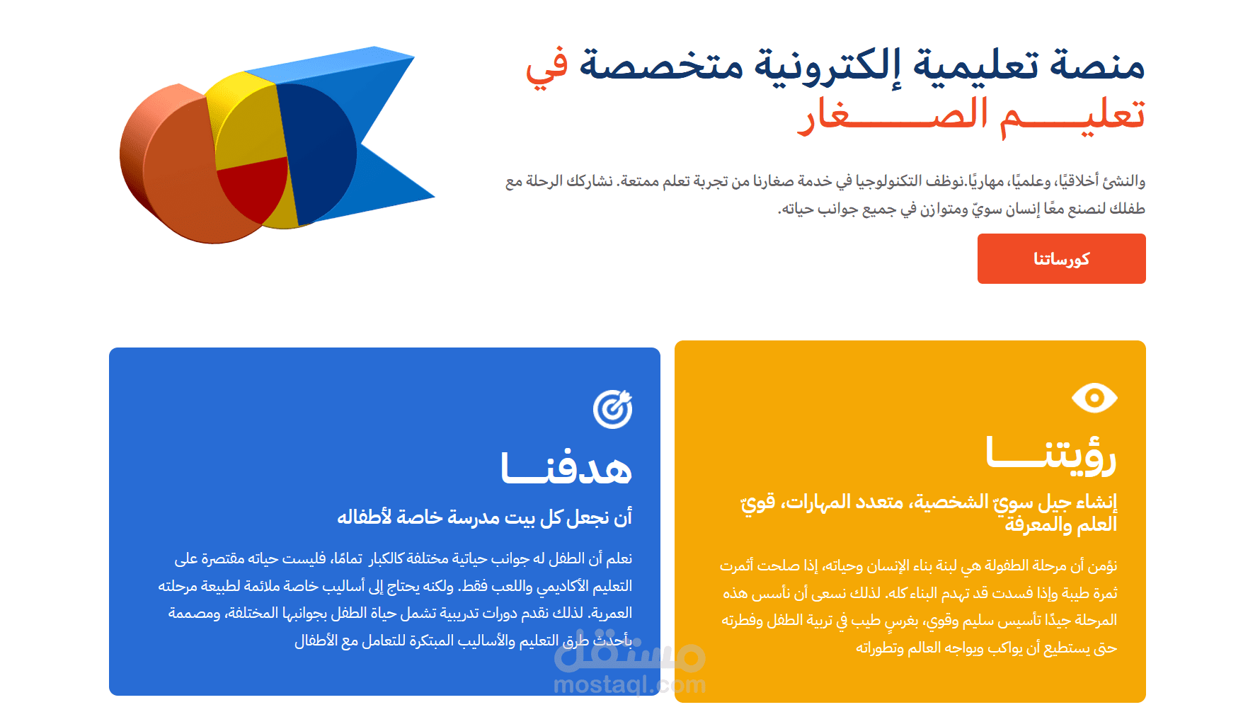 يعكس هذا المشروع القدرة على تحويل فكرة تعليمية إلى موقع ويب متكامل من ناحية التصميم وبناء الواجهة، مع الالتزام بأفضل الممارسات فى تطوير مواقع الويب الحديثة