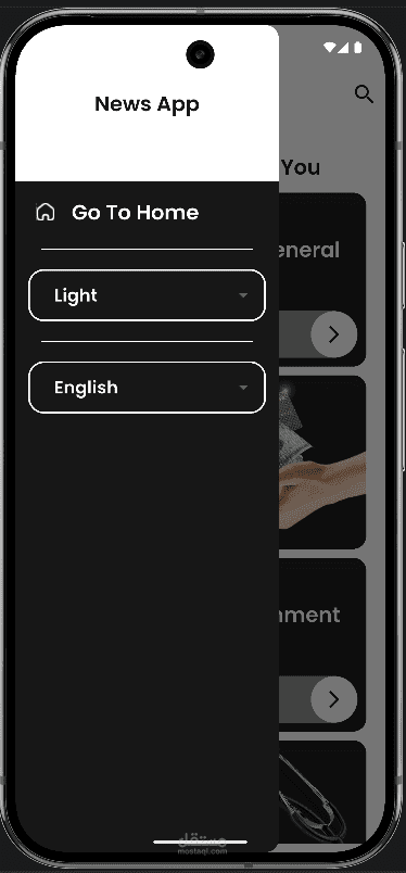 Settings (Drawer): للتحكم الكامل في تجربة المستخدم.