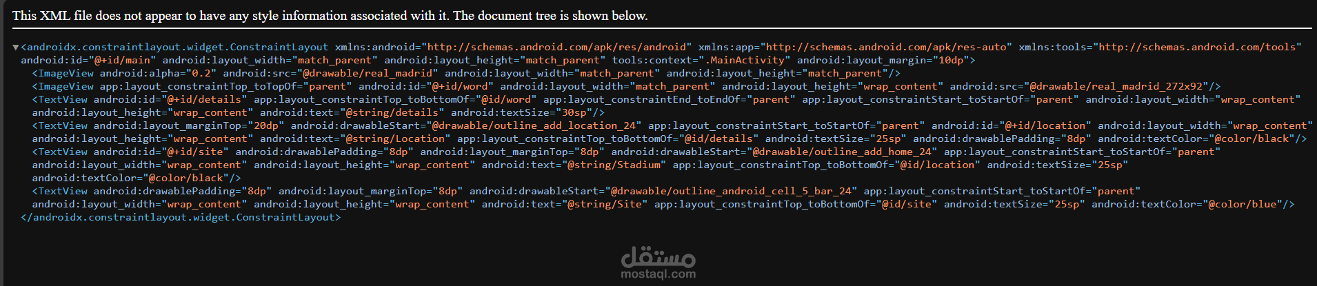 ابلكيشن بسيط عن نادي ريال مدريد معمول بxml