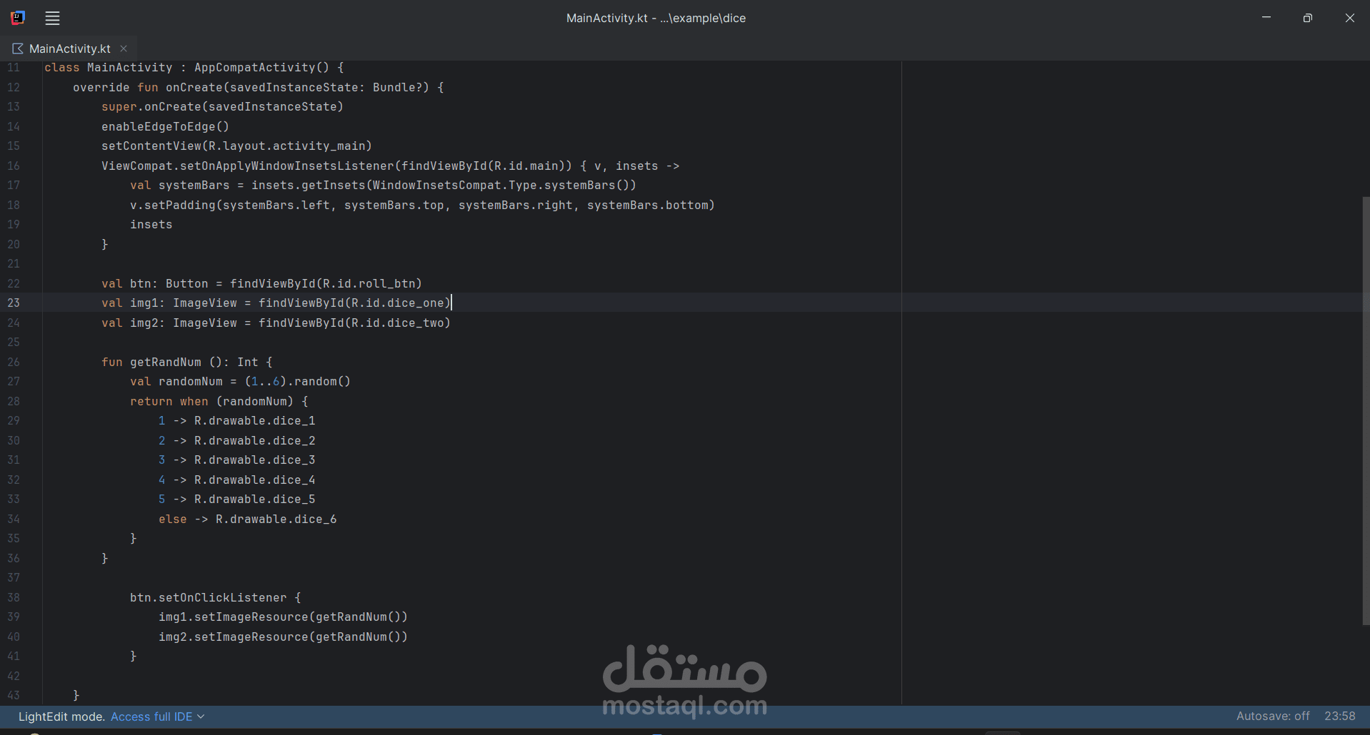 ابلكيشن في اتنين نرد كل مبتدوس Roll يظهر رقمين مختلفين و هكذا