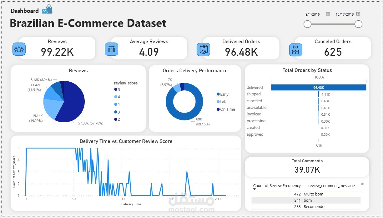 قمت بتنفيذ مشروع تحليل بيانات باستخدام Power BI لمحل تجاري في البرازيل بهدف فهم أداء المبيعات واتخاذ قرارات مبنية على البيانات. شمل المشروع تنظيف ومعالجة البيانات ثم إنشاء Dashboard تفاعلي يعرض أهم مؤشرات الأداء الرئيسية (KPIs).