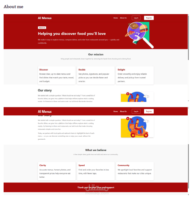 يسعى المشروع إلى تمكين المستخدمين من عرض تفاصيل المطاعم والبحث عنها والتنقل بينها من خلال واجهة واحدة، مما يجعل تجربة التصفح أكثر سلاسة وسهولة في الاستخدام.