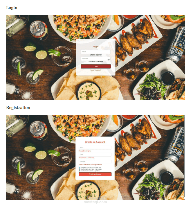 • إنشاء حساب (Register) – يمكن للمستخدمين إنشاء حساب جديد (مع وجود التحقق من صحة البيانات).