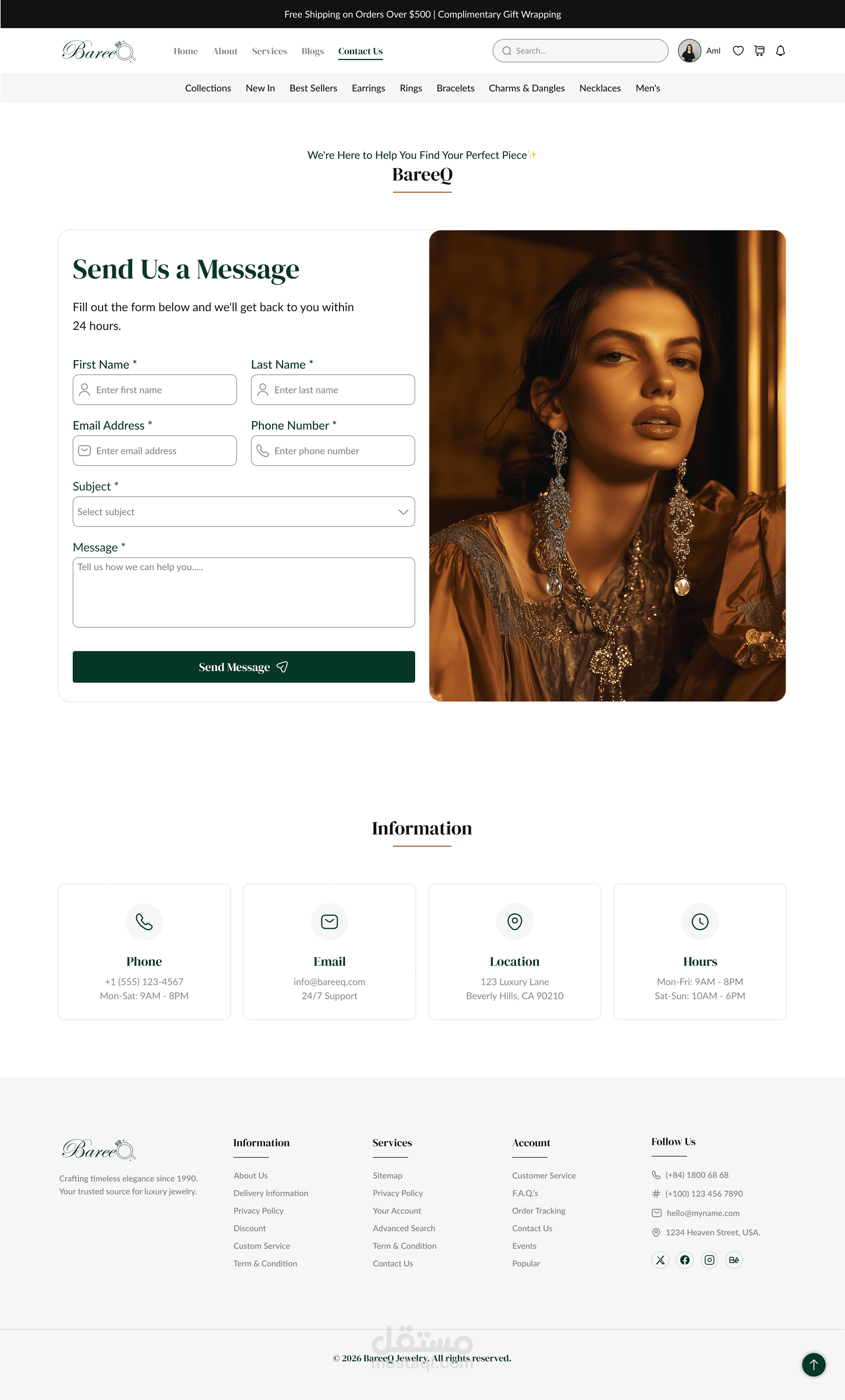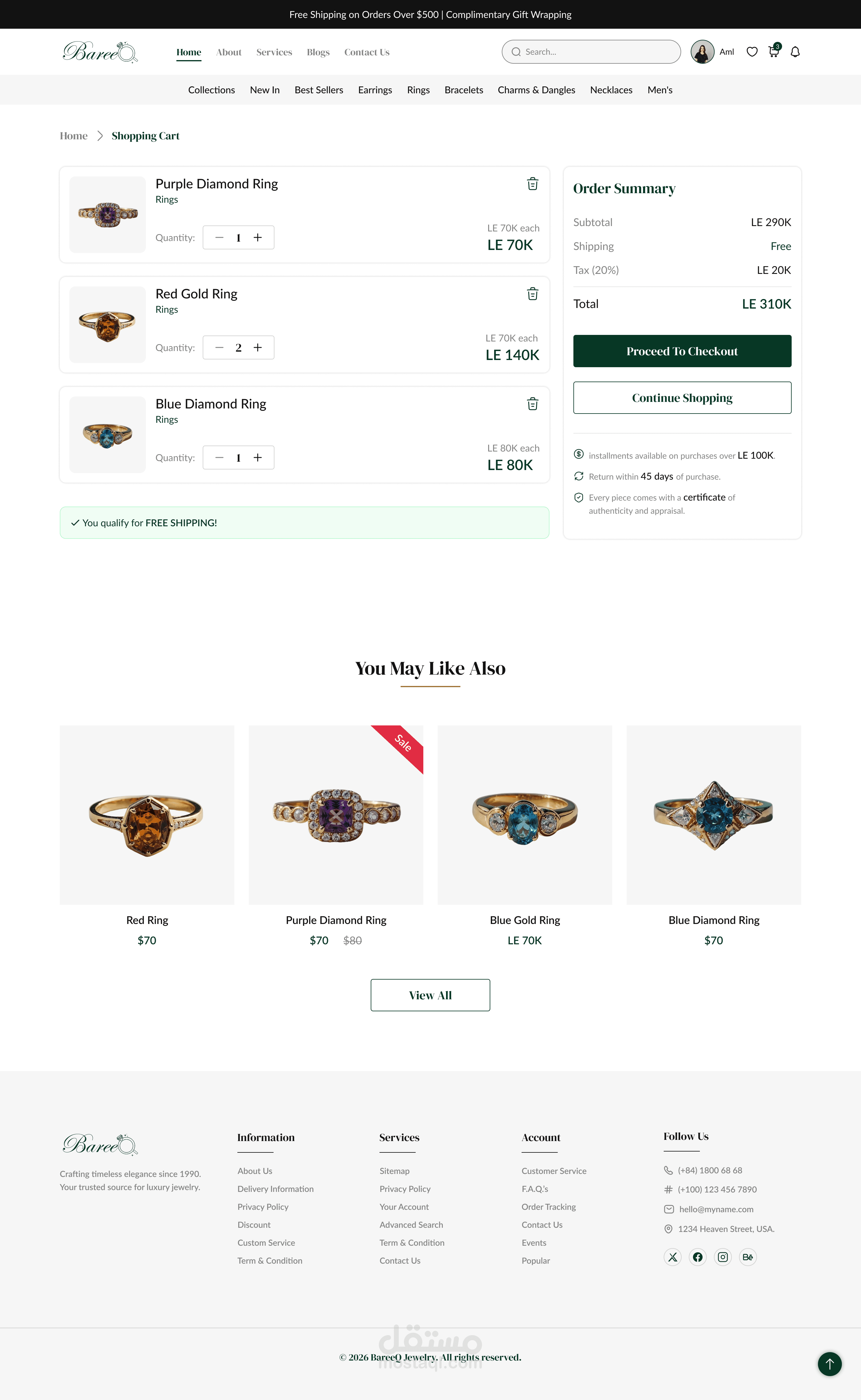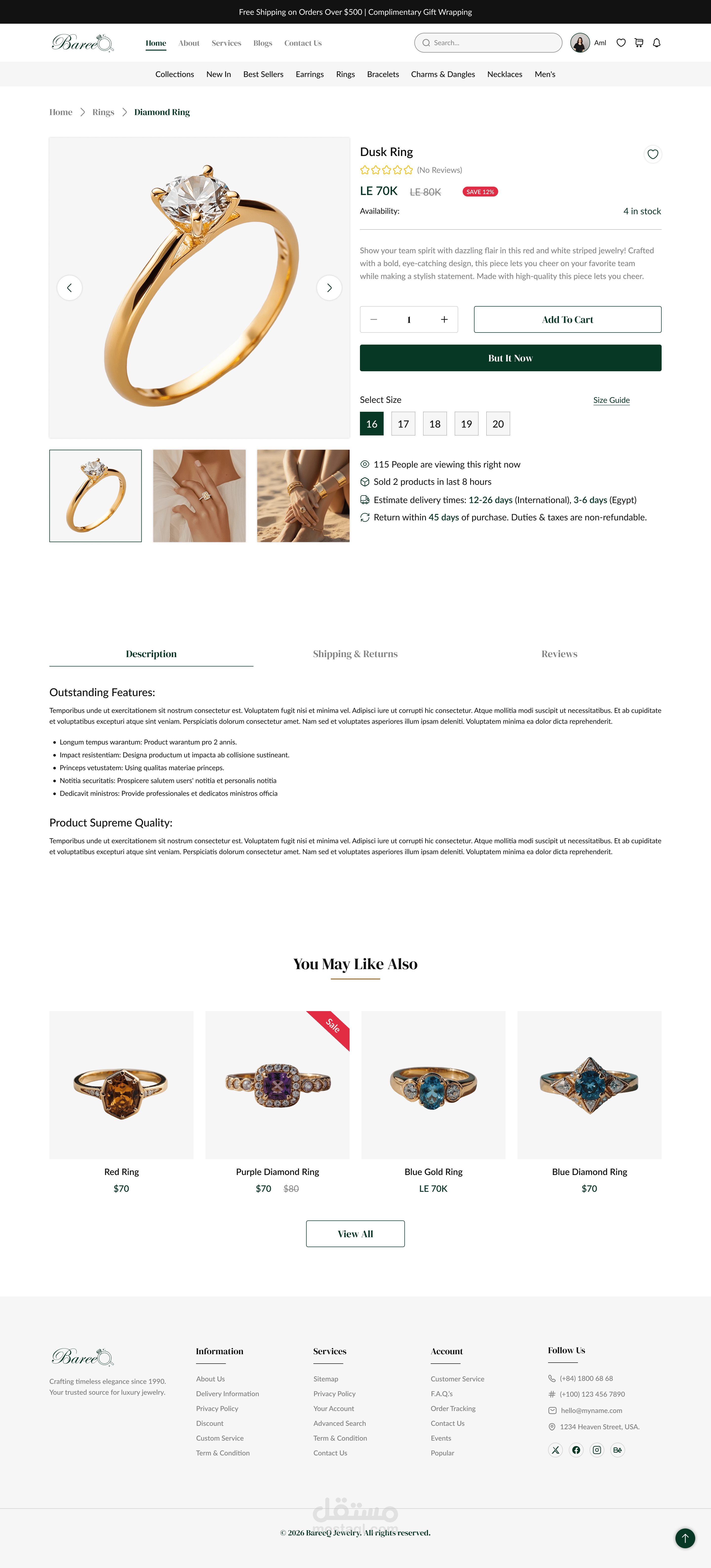 Bareeq is an e-commerce jewelry brand designed to reflect elegance, confidence, and individuality. The website was created to offer a seamless online shopping experience where users can easily explore collections, view detailed product information, and complete purchases smoothly.