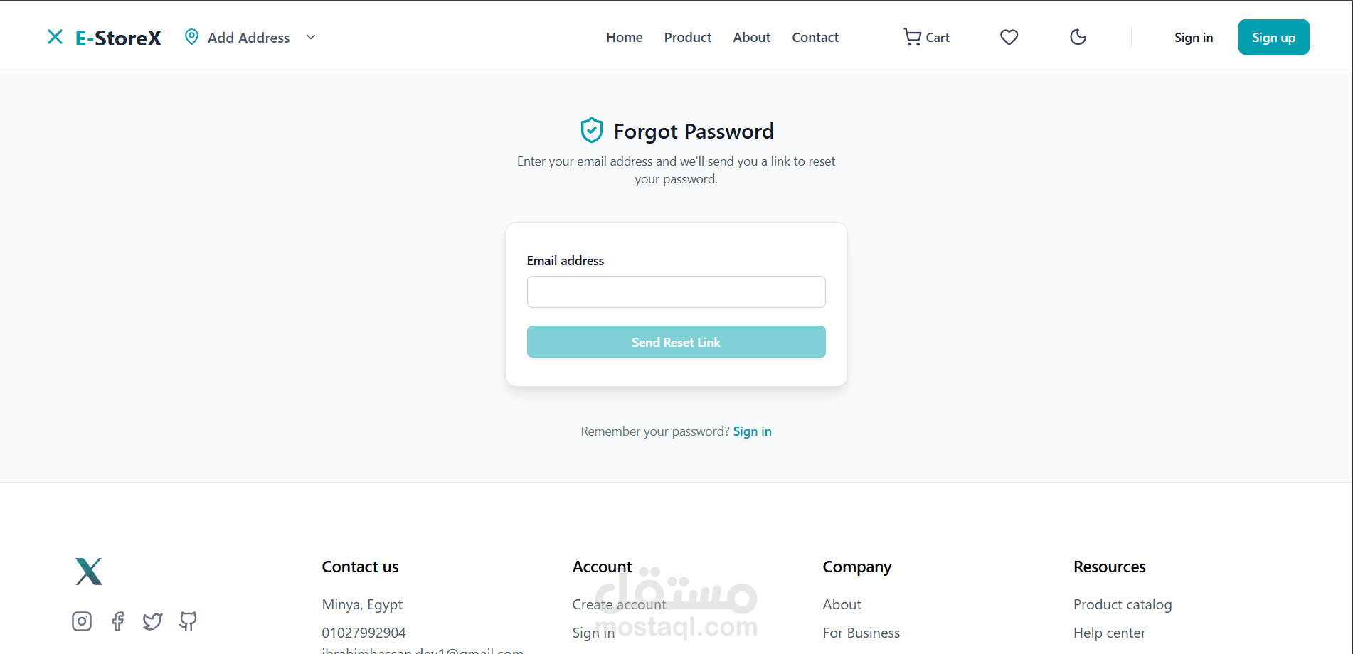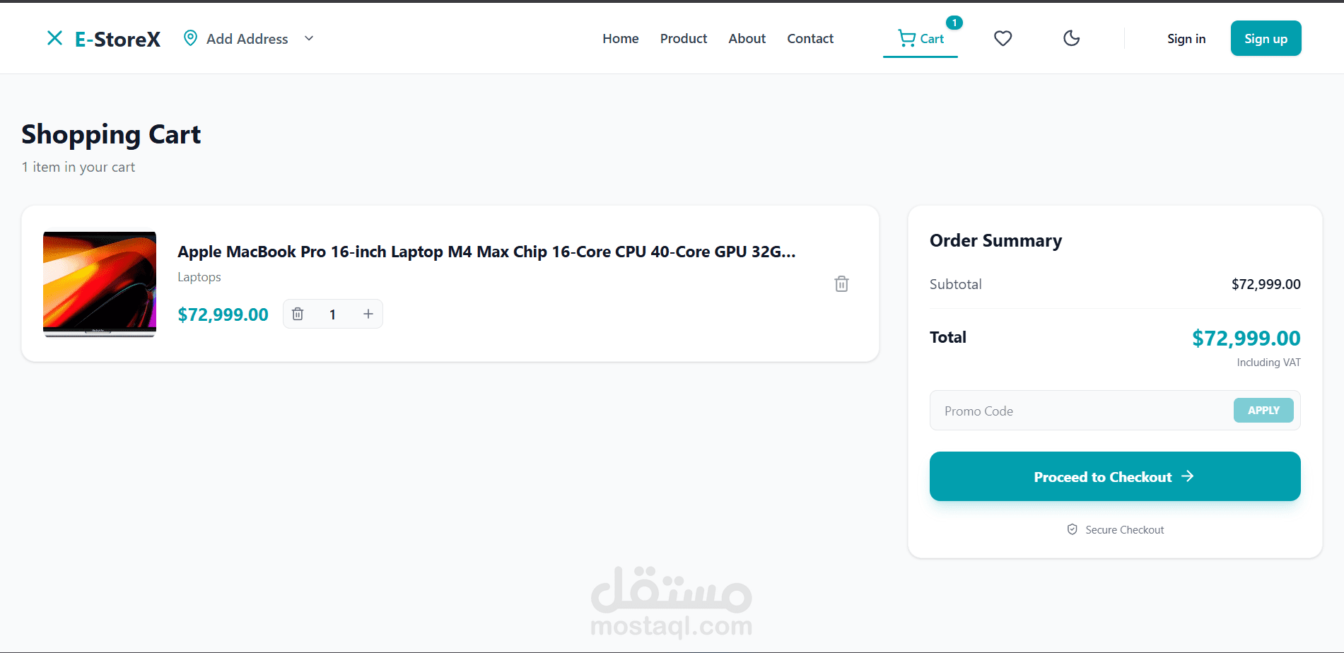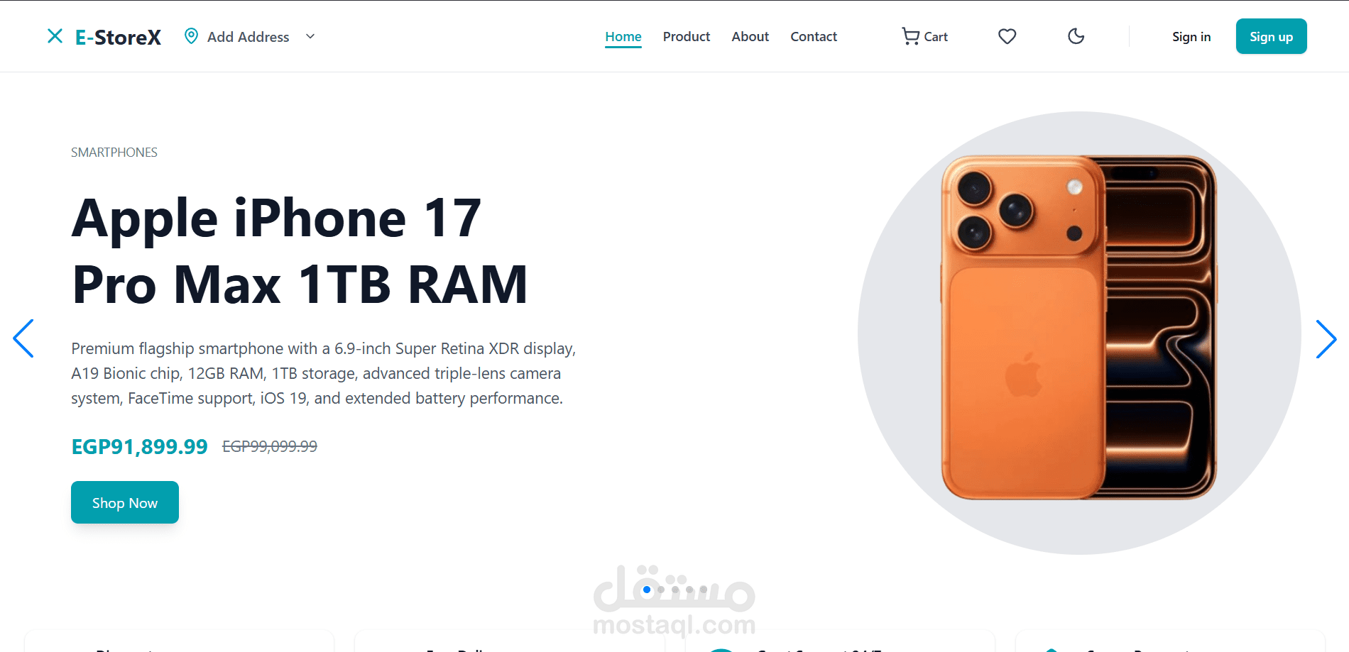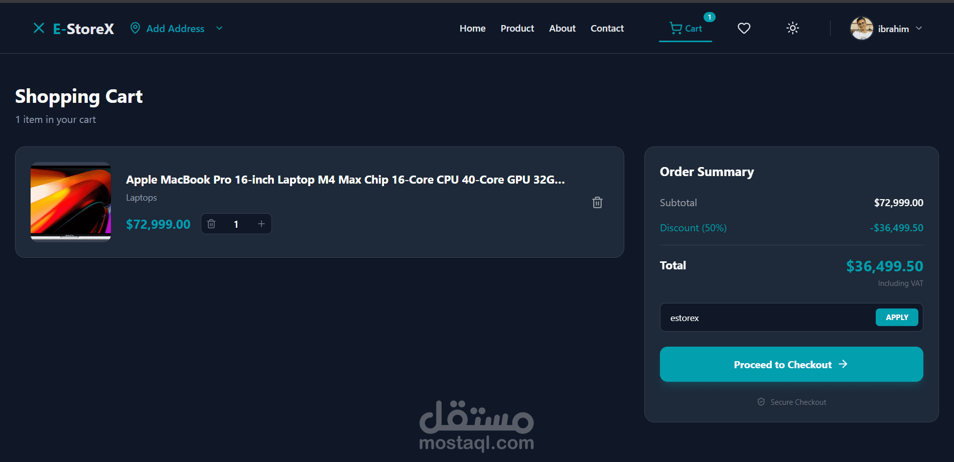 E-StoreX هو تطبيق واجهة أمامية (Frontend) لمتجر إلكتروني احترافي تم تطويره باستخدام Angular 19 و TypeScript و TailwindCSS، ومتكامل مع Backend مبني باستخدام ASP.NET Core Web API.