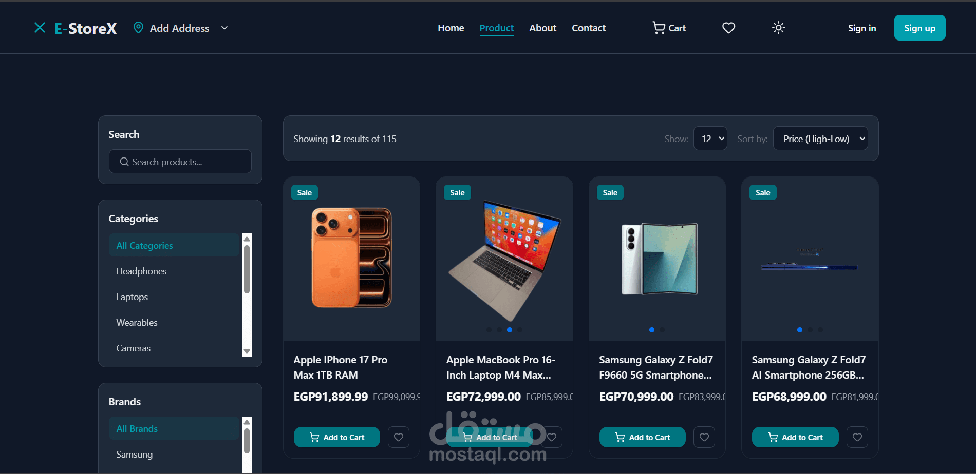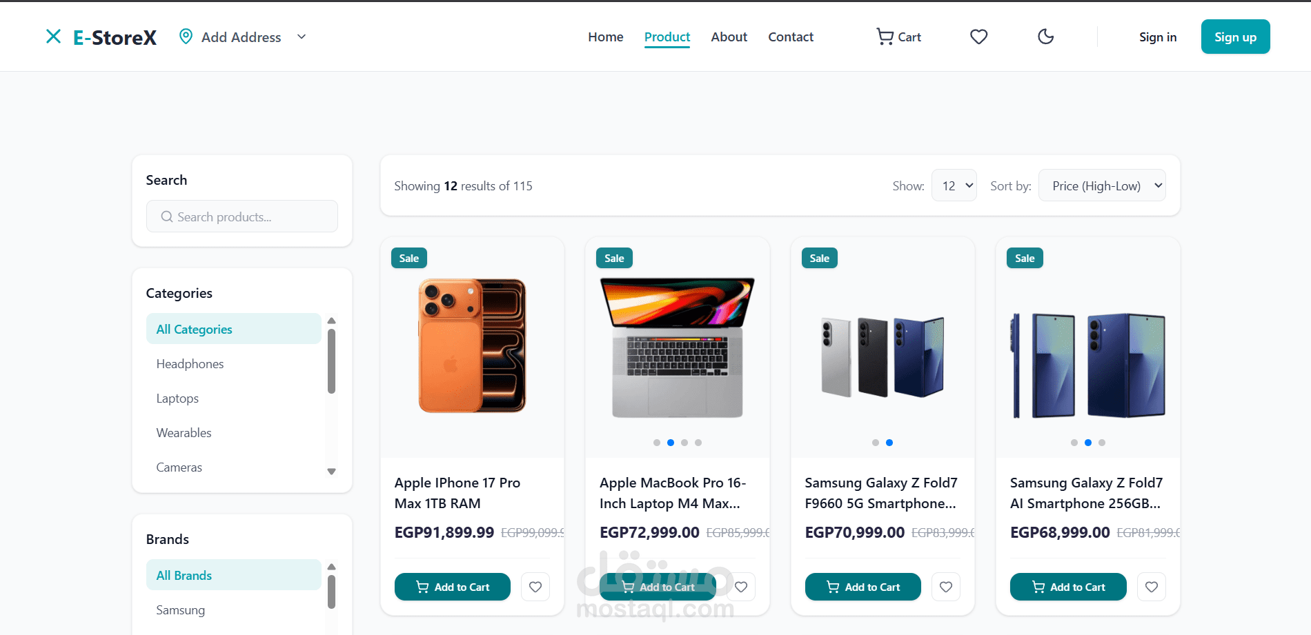 - تصفح المنتجات مع فلترة متقدمة والبحث