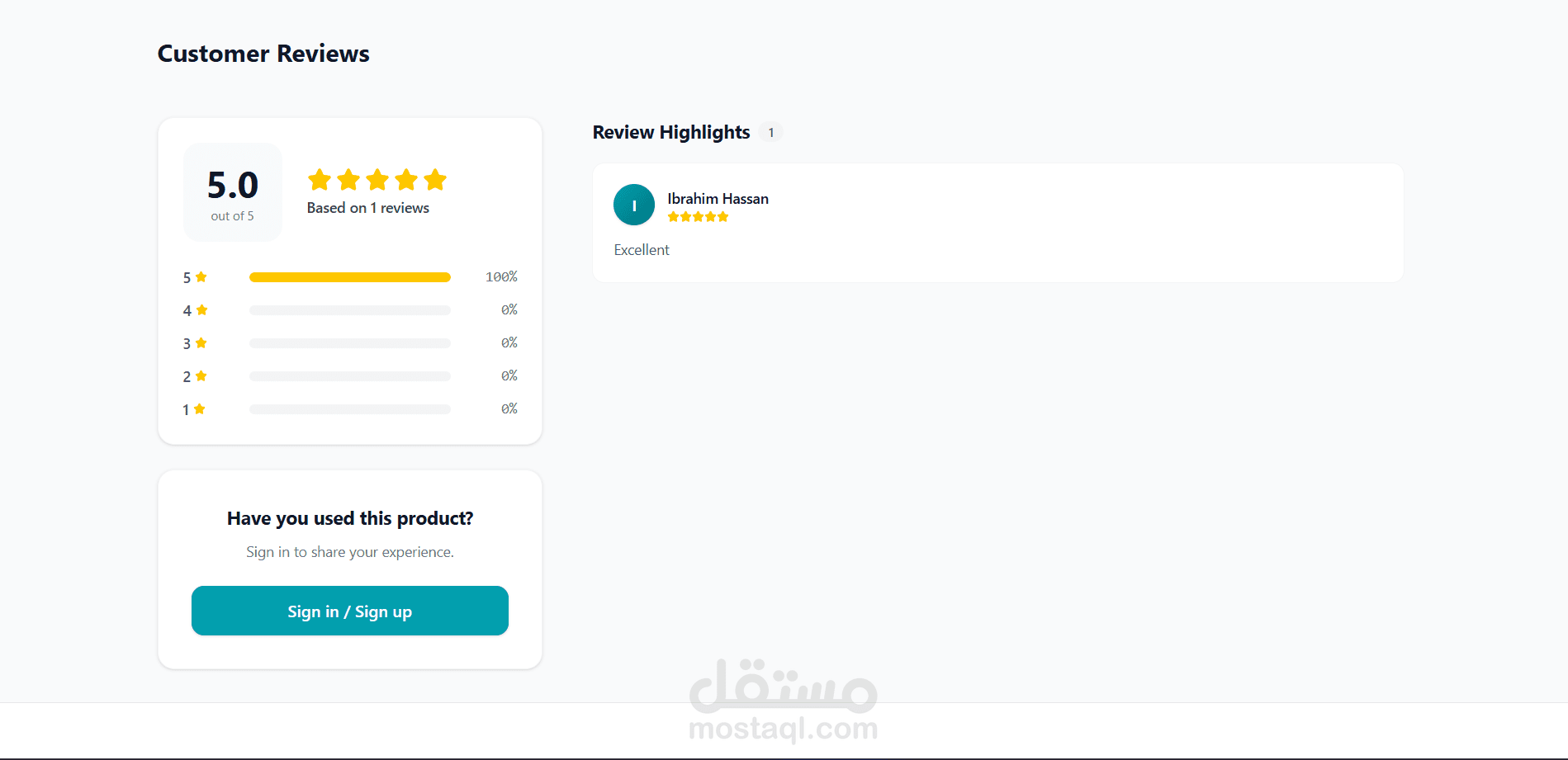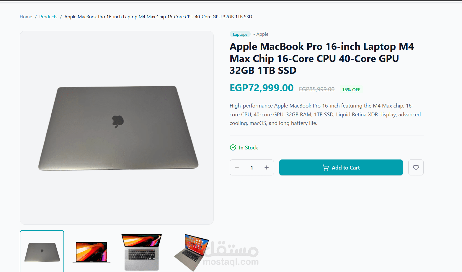 - صفحة تفاصيل منتج مع عرض حالة المخزون