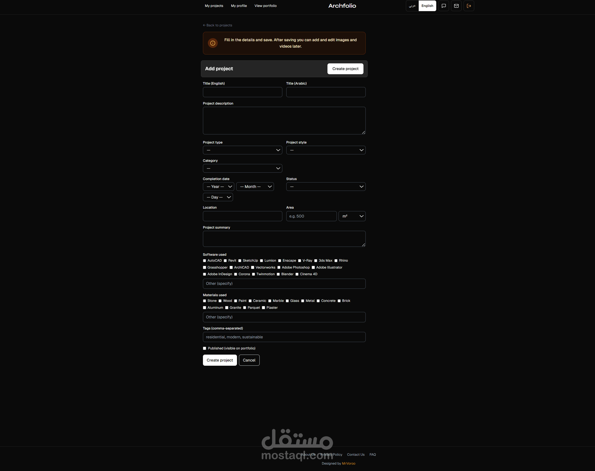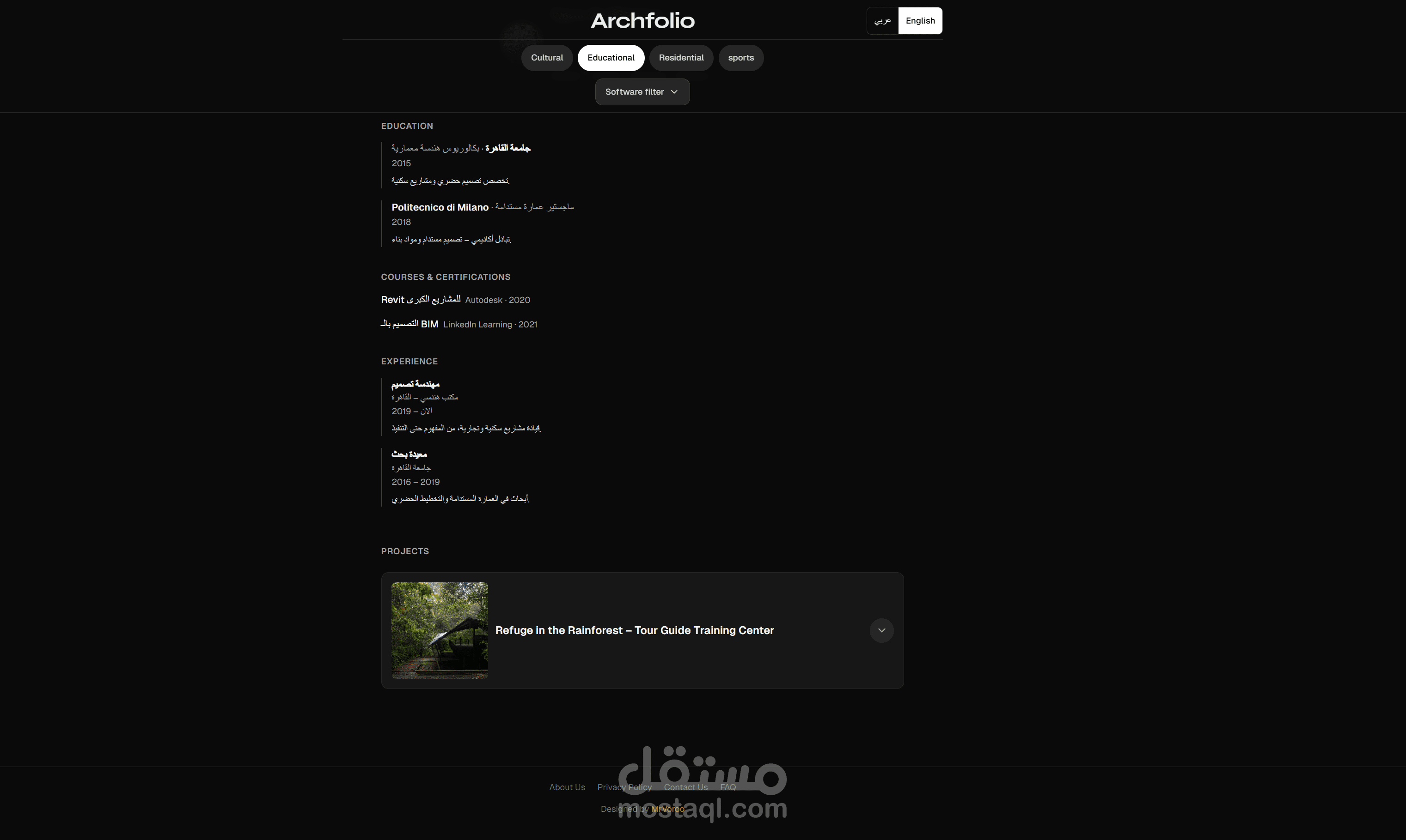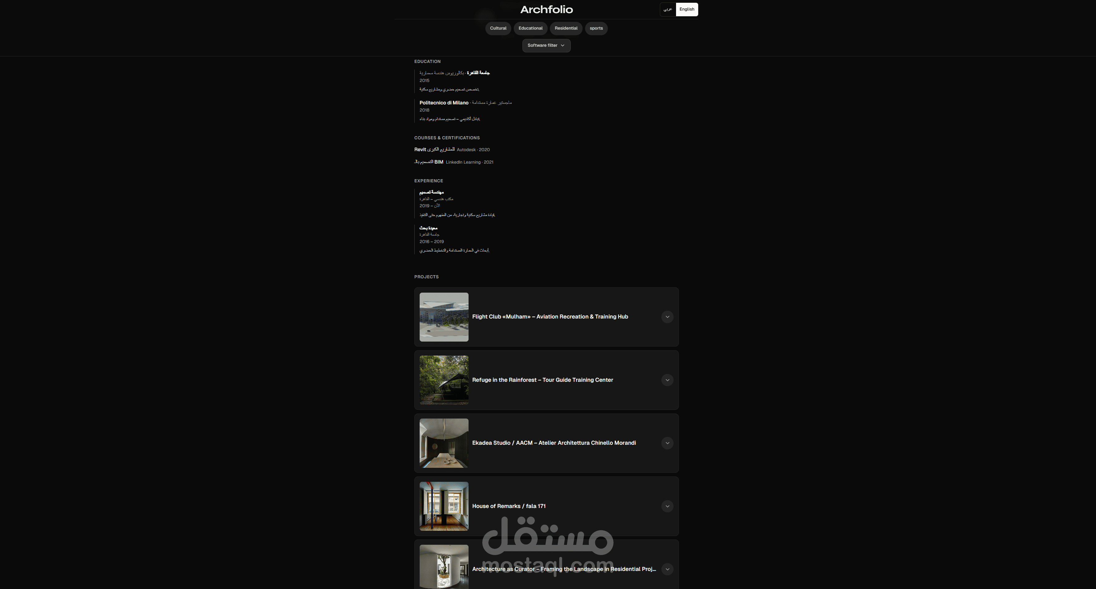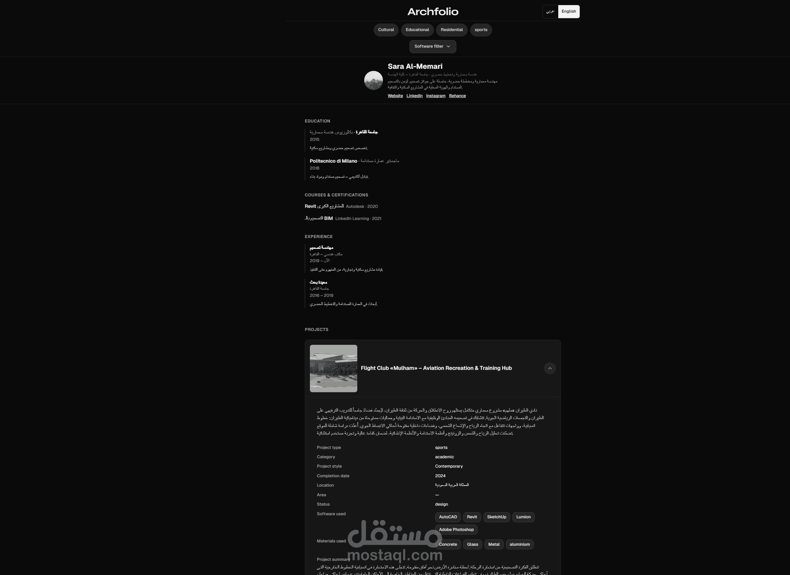 مشروع: منصة Archfolio | النظام المتكامل لبناء الهوية الرقمية للمعماريين