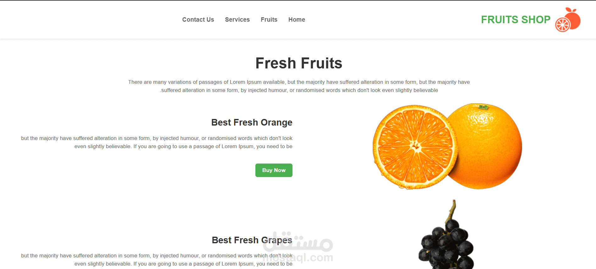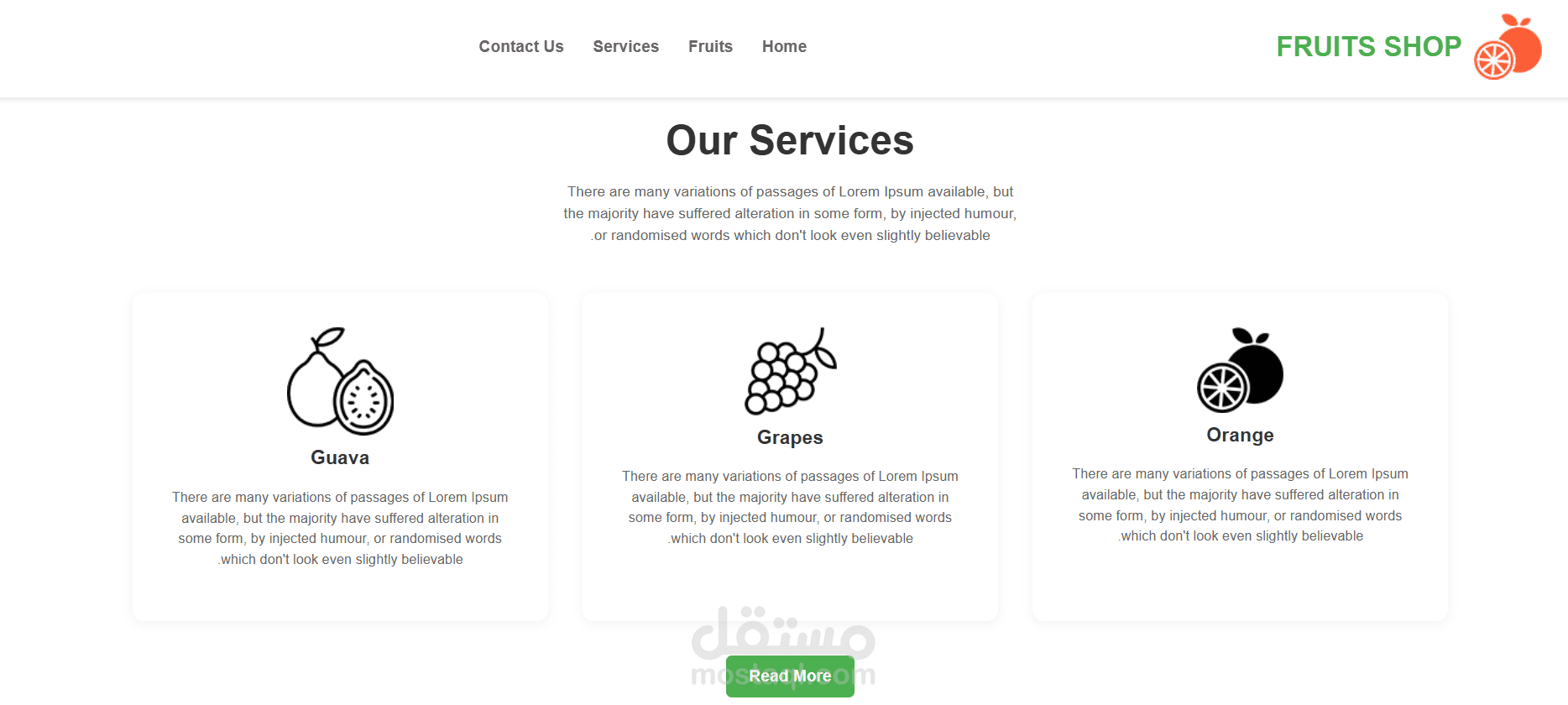قمت بتصميم وتطوير واجهة موقع لمحل فواكه يعرض المنتجات والخدمات بشكل بسيط وجذاب، مع التركيز على تنظيم المحتوى وسهولة التصفح.