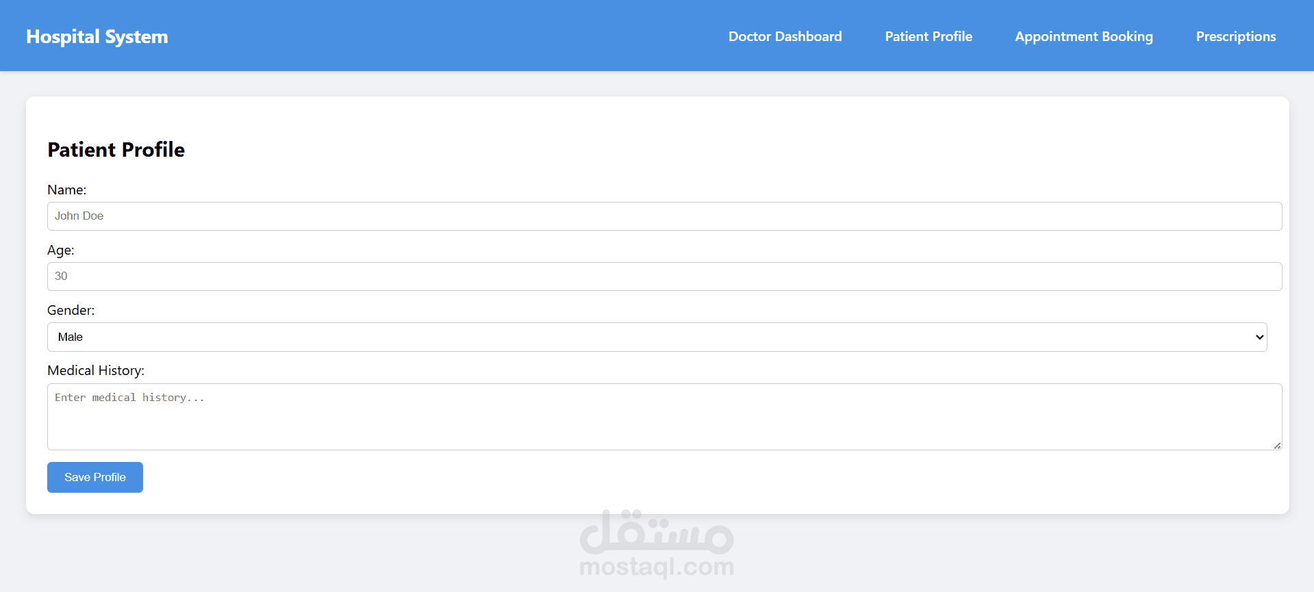 Patient Profile لإدخال وتعديل بيانات المرضى مثل الاسم والعمر والتاريخ الطبي