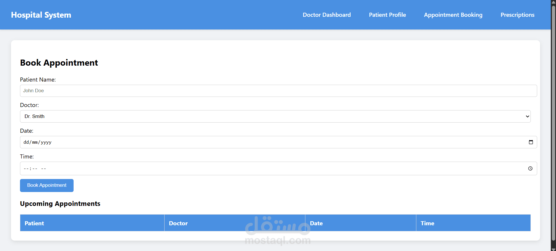 Doctor Dashboard لعرض المواعيد القادمة (Upcoming Appointments)