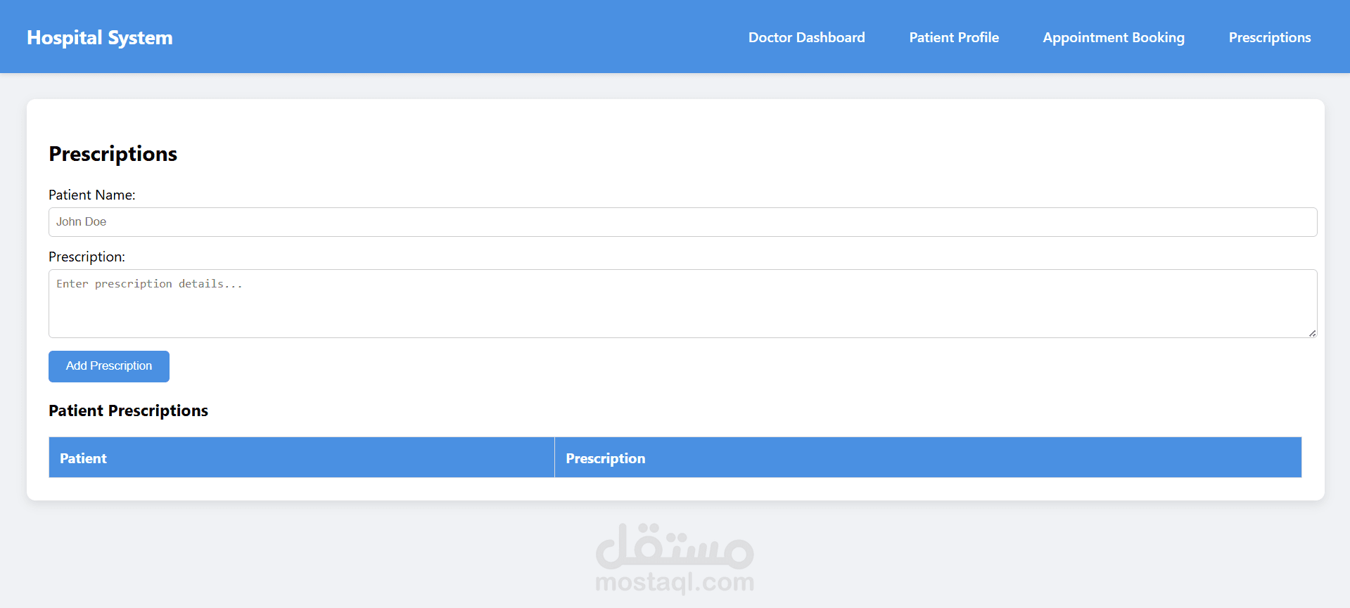 Prescriptions System لإضافة الوصفات الطبية وعرضها لكل مريض