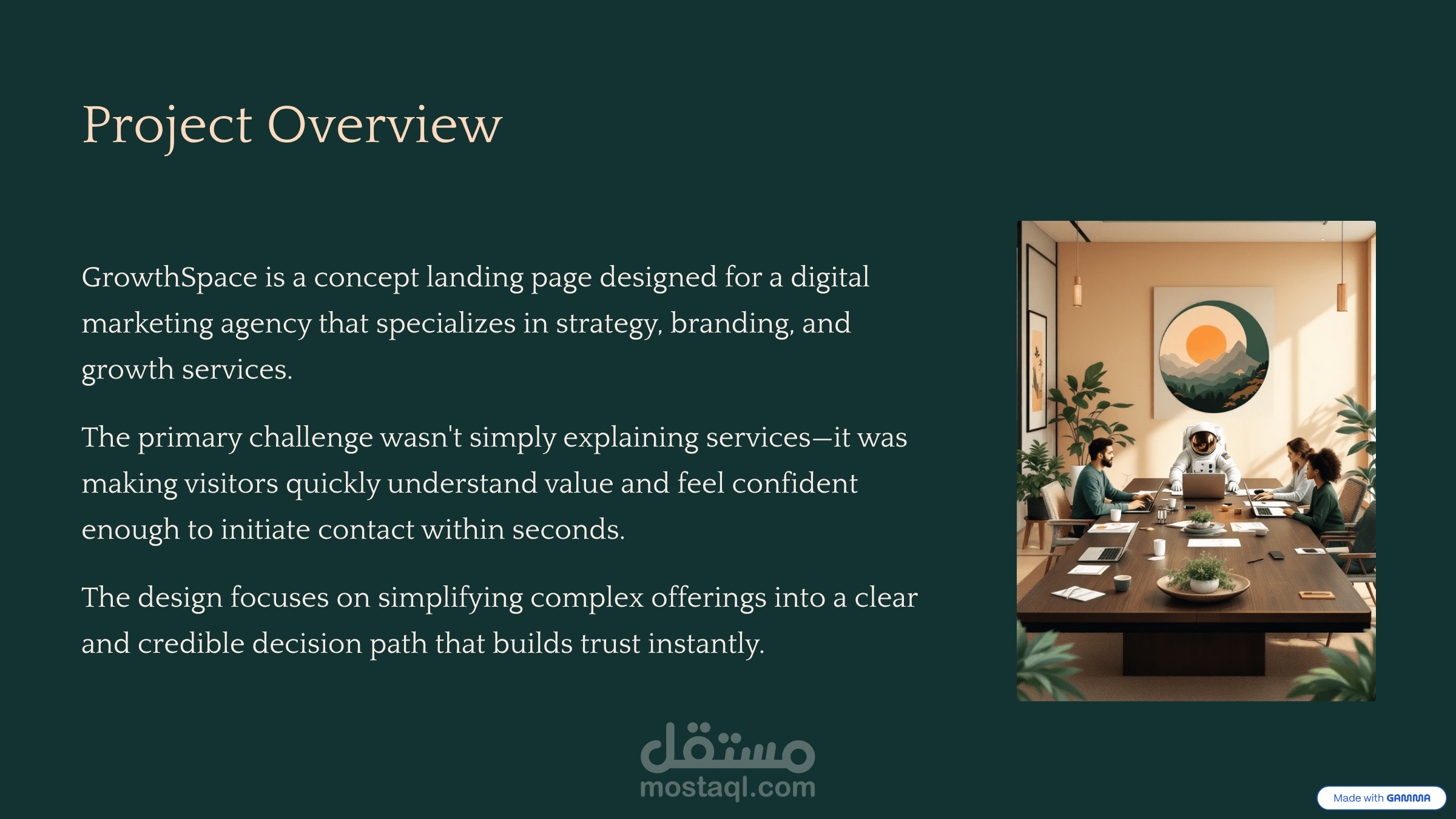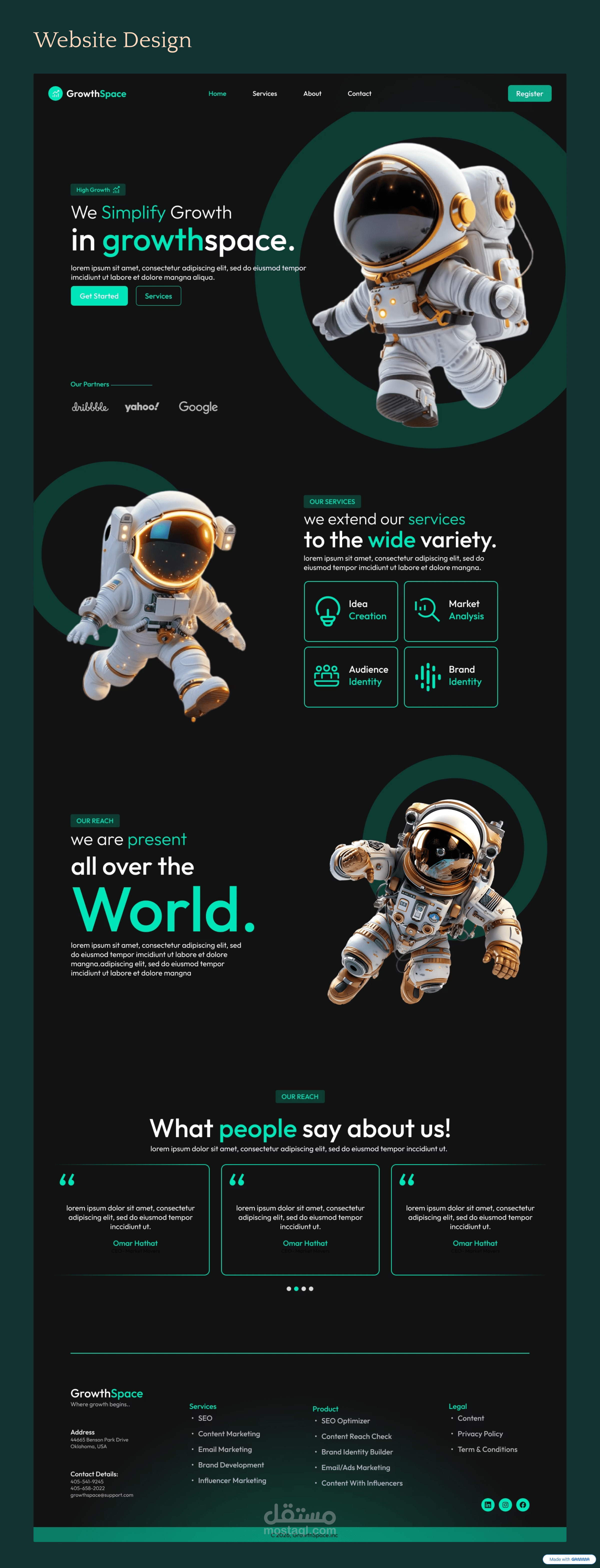 GrowthSpace is a concept landing page designed for a digital marketing agency that specializes in strategy, branding, and growth services.