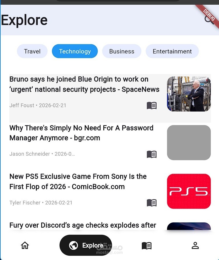 قمت بتطوير تطبيق أخبار احترافي باستخدام Flutter لعرض أحدث الأخبار بشكل سريع ومنظم، مع واجهة مستخدم حديثة وتجربة استخدام سلسة على مختلف أحجام الشاشات.
