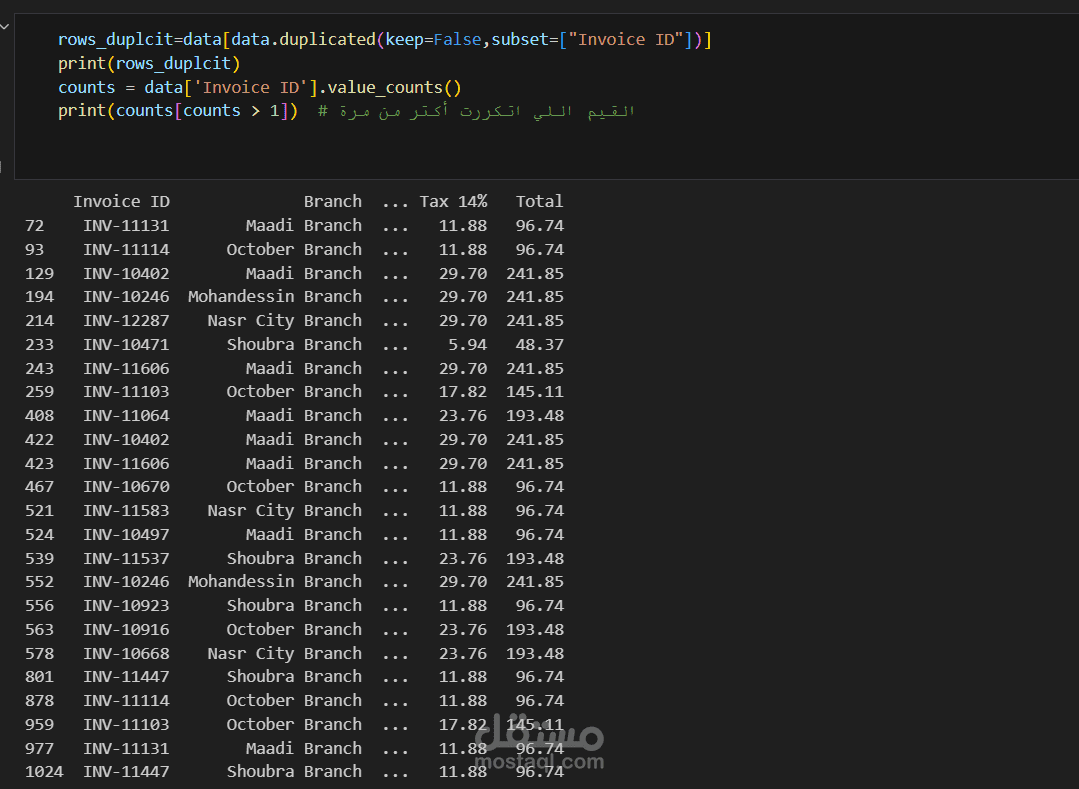 تم التحليل لتعرف علي أداء كل فرع من حيث المبيعات وعدد الفواتير