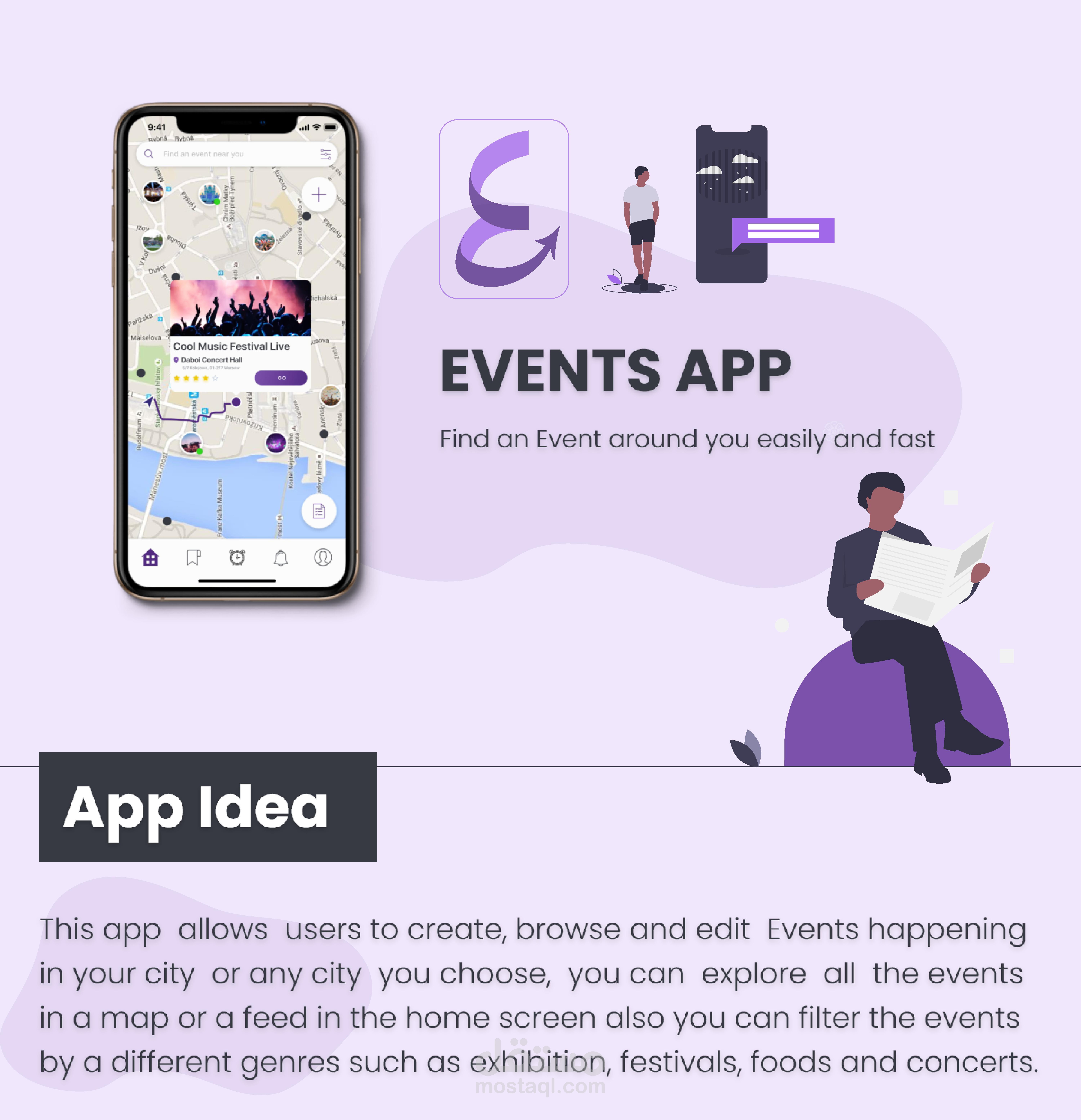 It is an app, allows you to create or explore events in a specific city.