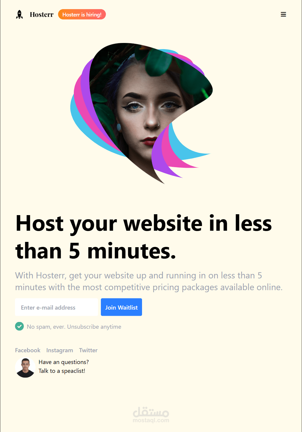 ده مشروع Landing Page لشركة استضافة مواقع نفذته باستخدام HTML و Tailwind CSS. ركزت فيه إني أطلع تصميم نظيف وبسيط مع توزيع واضح للعناصر وسهولة في القراءة. اشتغلت على إنه يكون متجاوب بالكامل ويشتغل بشكل كويس على الموبايل والتابلت واللاب توب، واعتمدت على Tailwind في تنظيم الستايل وتسريع عملية التطوير.