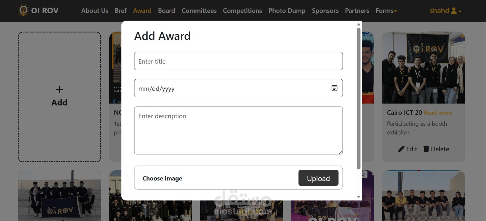 "قادتي لحضور فريق OI ROV الرقمي مكنتني من تطوير الموقع الرسمي للفريق لعرض الإنجازات وتمكين التقديمات عبر الإنترنت. باستخدام React.js، وBootstrap، وLaravel، وMySQL، أنشأت لوحة تحكم متكاملة لإدارة المحتوى وقمت بنشر الموقع على نطاق مخصص لضمان سهولة الوصول والتشغيل بسلاسة."
