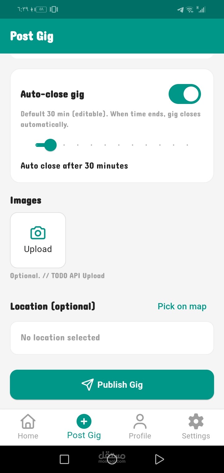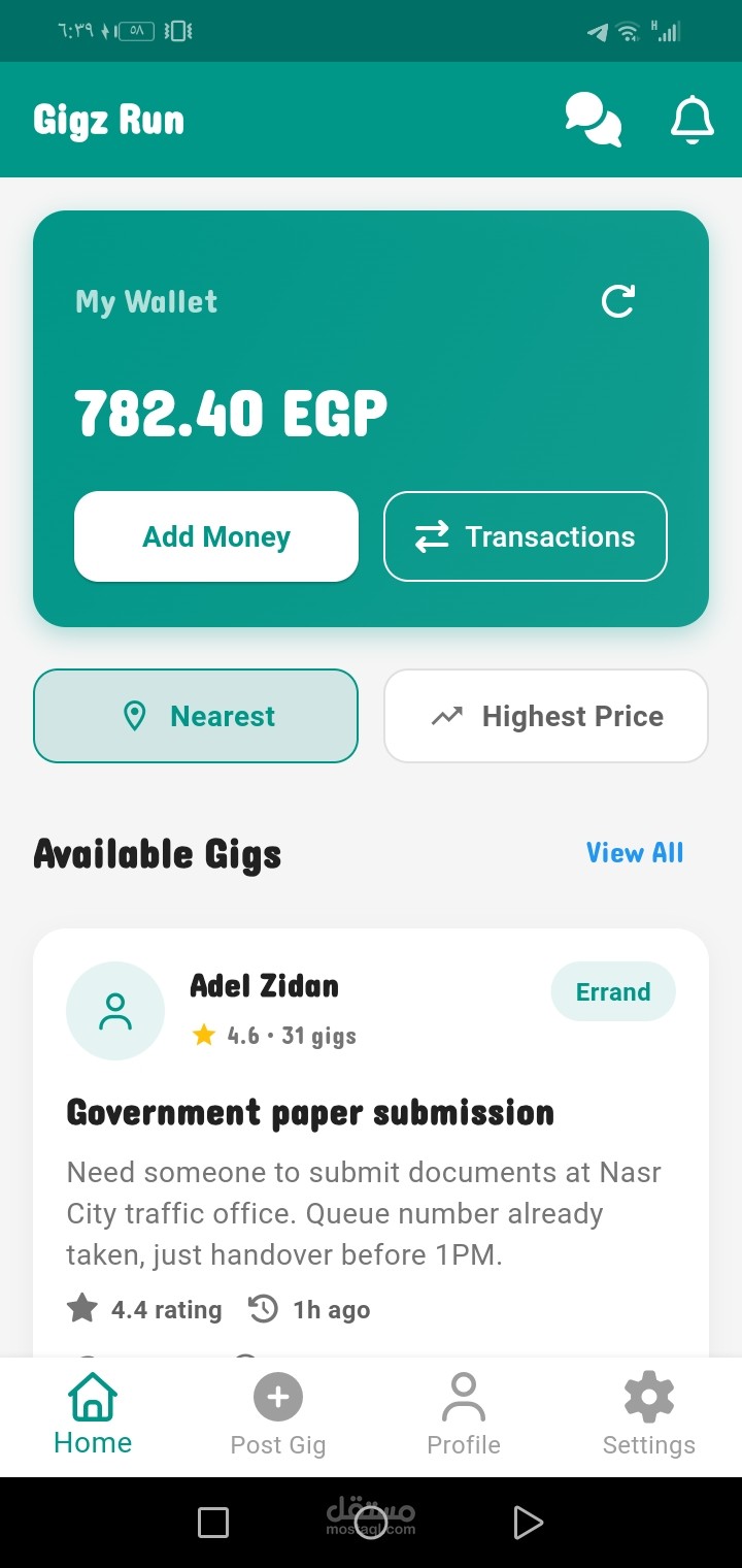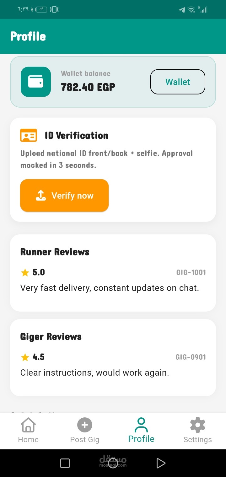 Small Tasks and Gigs App allow to users to create and complete gigs an make some profits