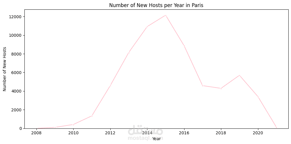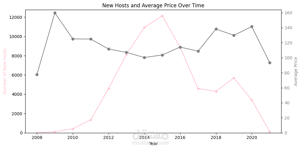 Conducted time-series analysis on host activity by tracking the number of new hosts and average prices over multiple years.