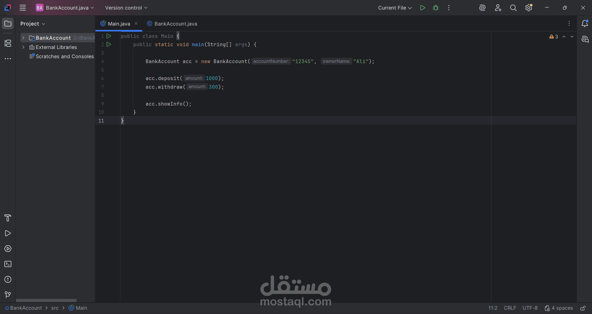هذا المشروع عبارة عن نظام بسيط لإدارة الحسابات البنكية، يهدف إلى مساعدة المستخدم في إدارة حسابه بطريقة سهلة ومنظمة. يتيح النظام إنشاء حساب بنكي، وإيداع الأموال، وسحب الأموال، ومعرفة الرصيد الحالي، مما يساعد على متابعة العمليات المالية بشكل بسيط وواضح. الهدف من المشروع هو تقديم نموذج مبسط لكيفية إدارة الحسابات البنكية بطريقة عملية و ستحصل على ملف سورس كود (source code)