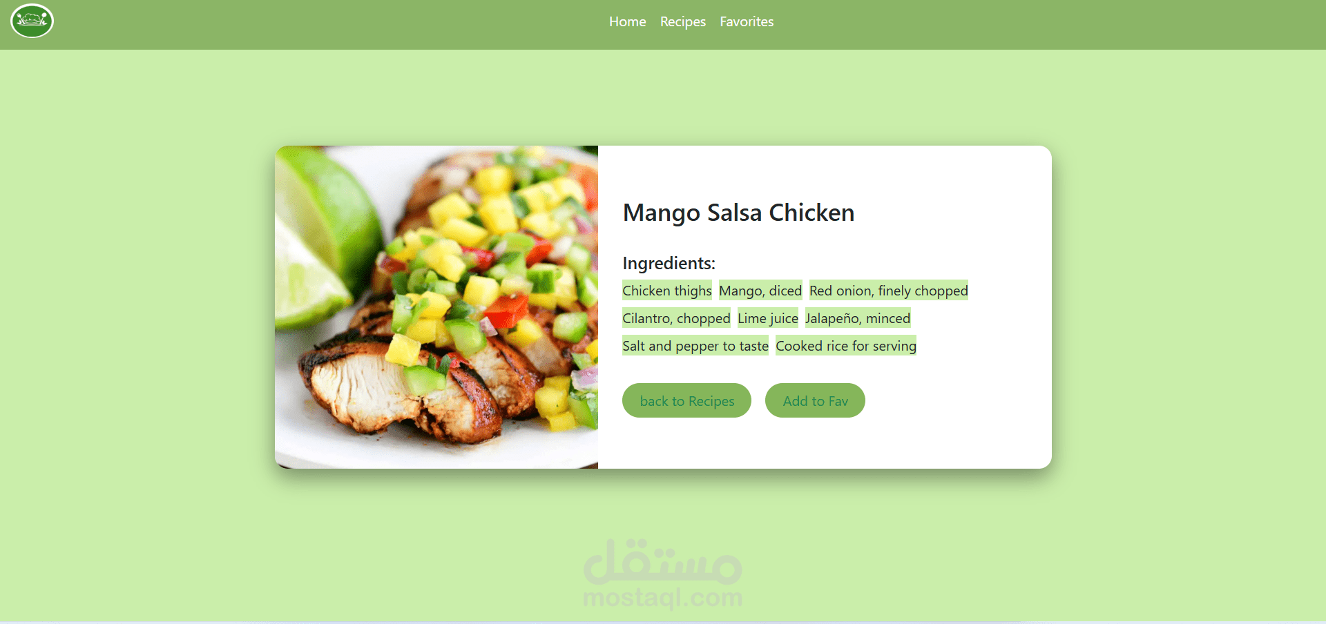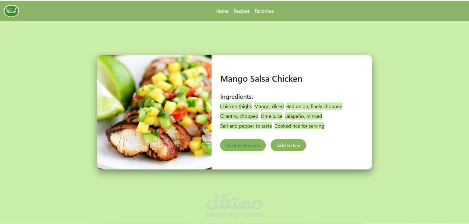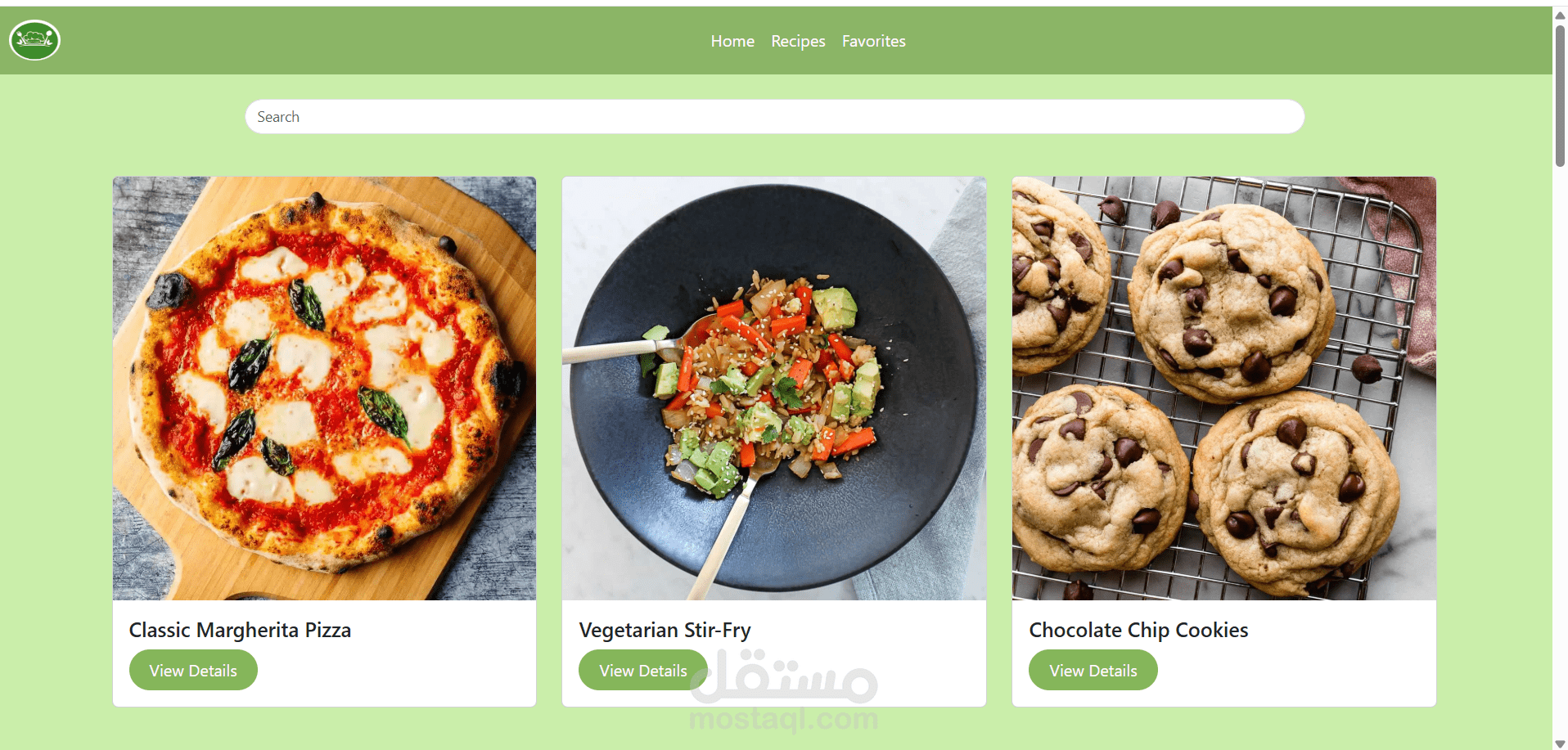 This project is a dynamic and fully responsive Recipe Web Application that allows users to explore, search, and manage recipes بسهولة من خلال واجهة حديثة وسهلة الاستخدام.