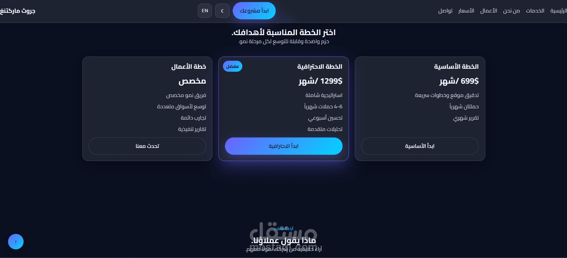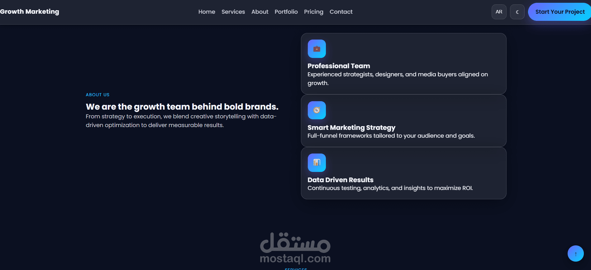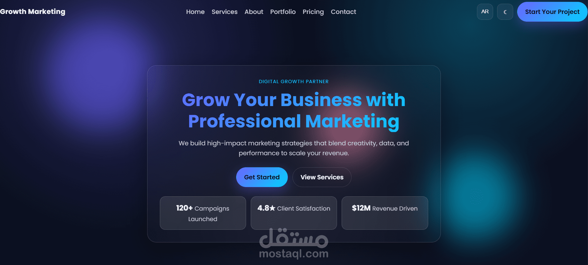 ? تصميم وتطوير موقع احترافي لشركة تسويق رقمي (Growth Marketing Agency)