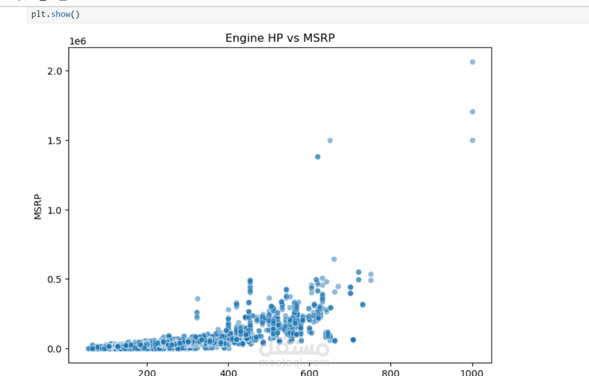 Generating scatter plots to analyze relationships such as Engine HP vs MSRP