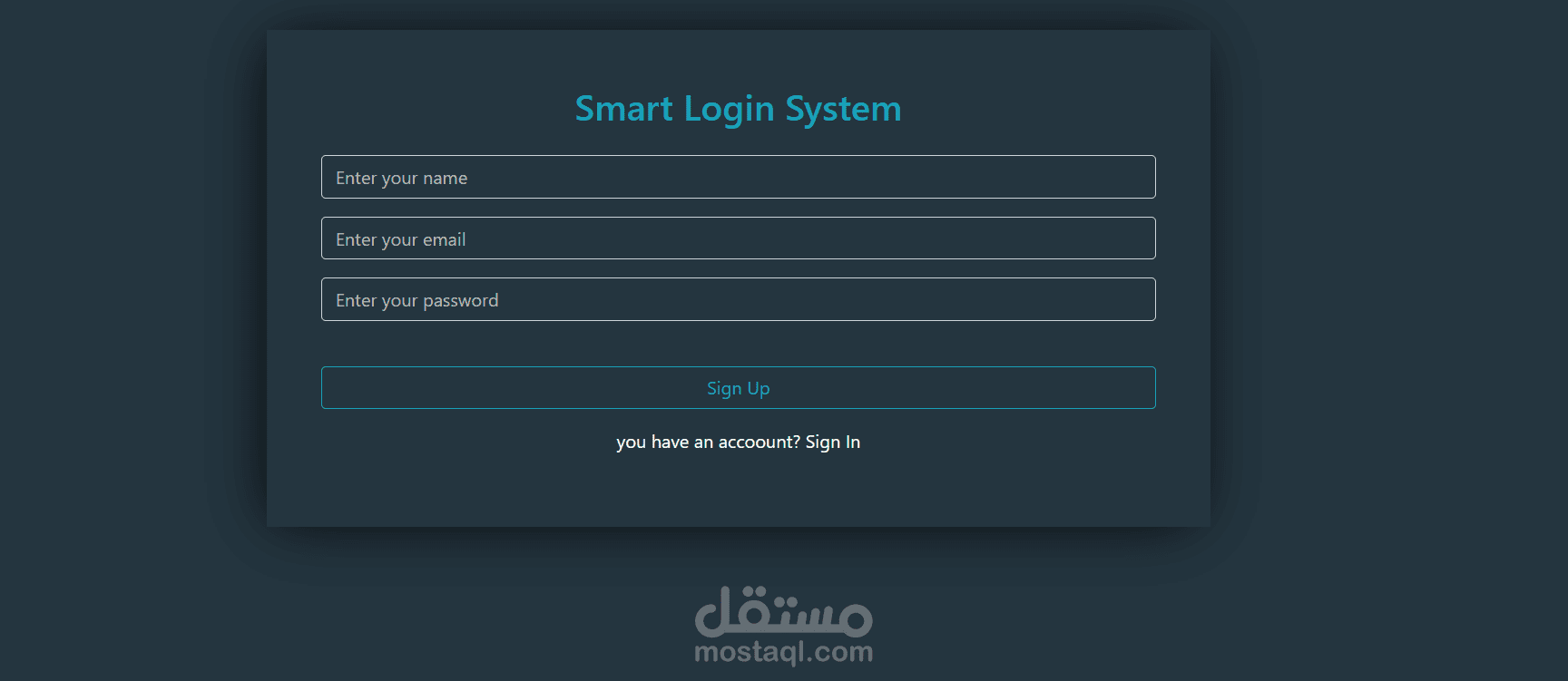 قمت بتطوير نظام تسجيل دخول وإنشاء حساب باستخدام JavaScript، حيث يمكن للمستخدم إنشاء حساب جديد وتسجيل الدخول بسهولة.