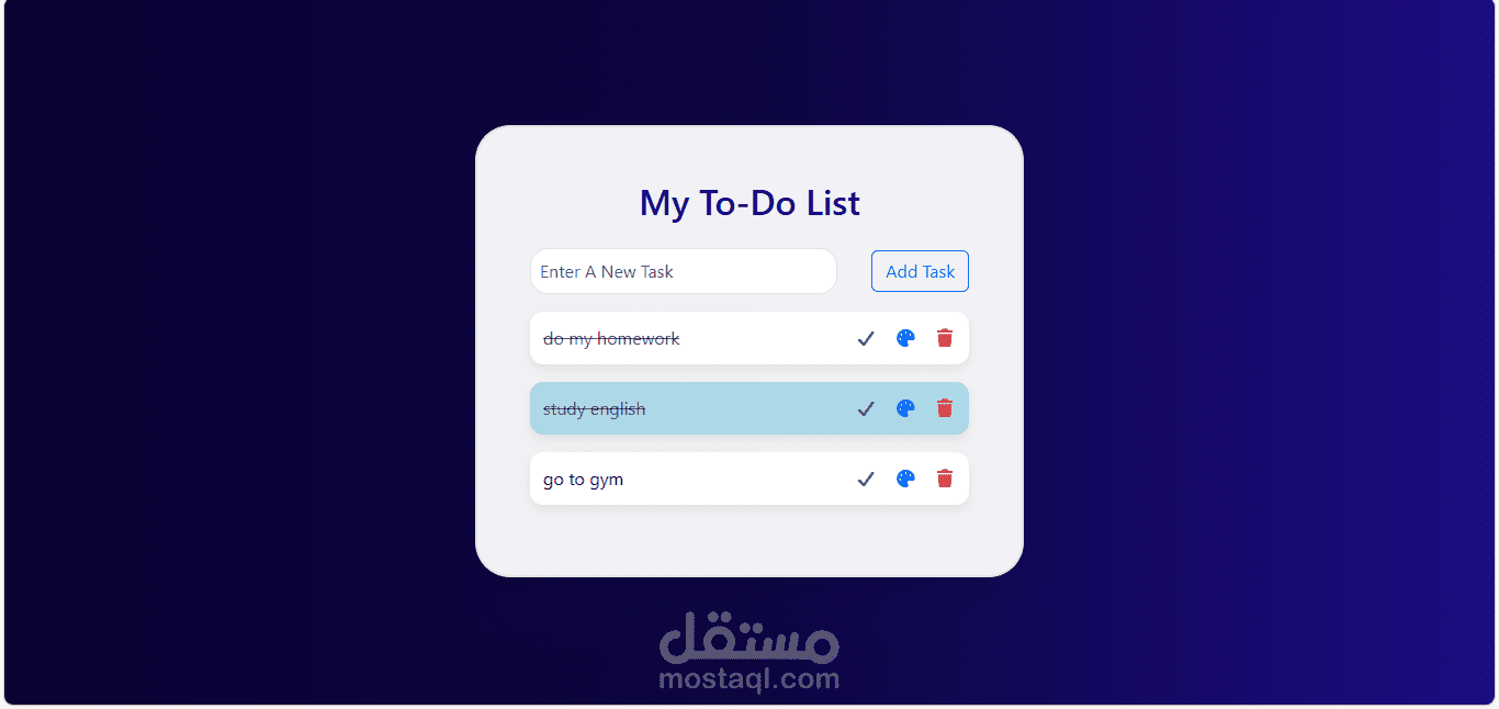 · ?️ حذف المهمة نهائياً باستخدام زر المسح.