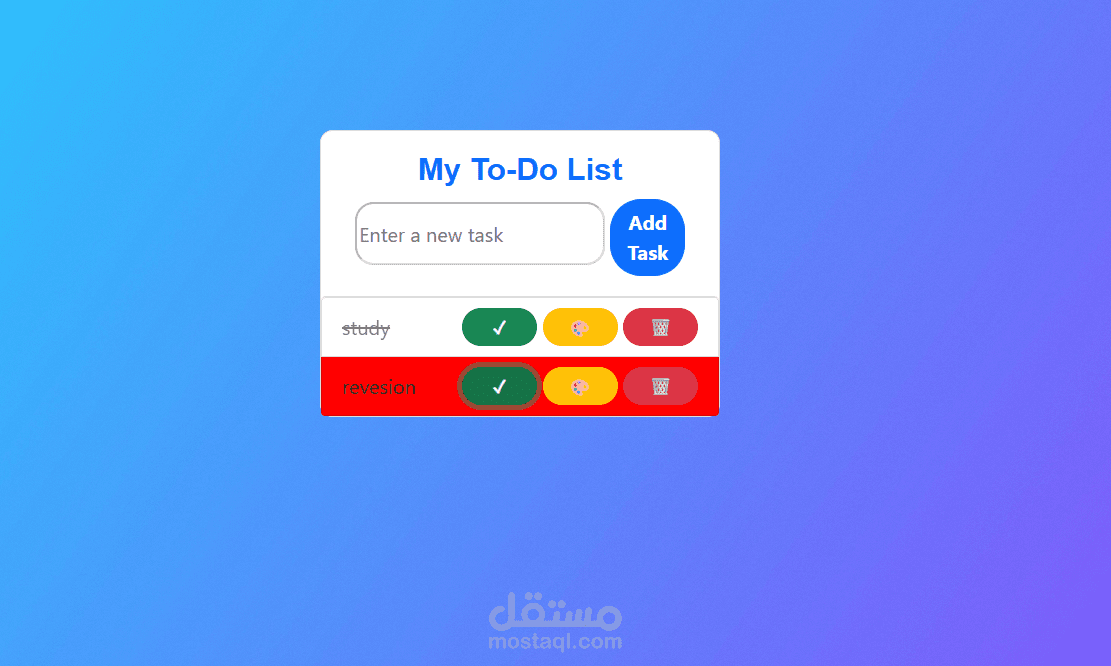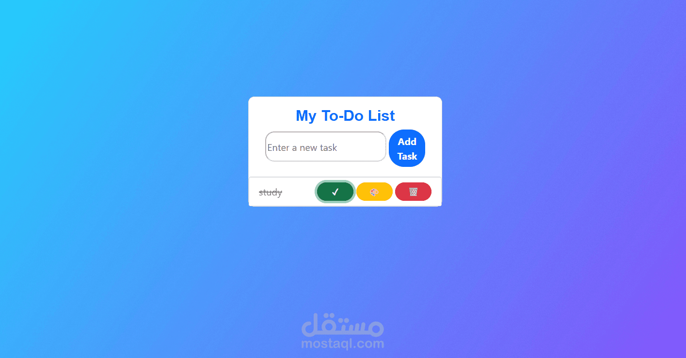 أنشأت صفحة To-Do List تفاعلية باستخدام HTML, CSS, JavaScript و Bootstrap.