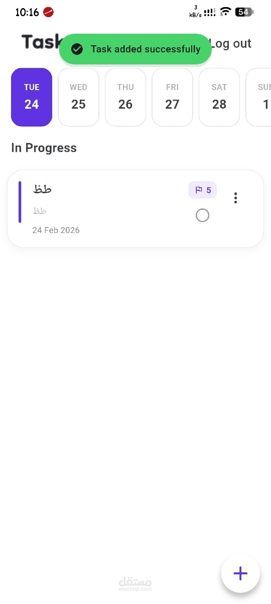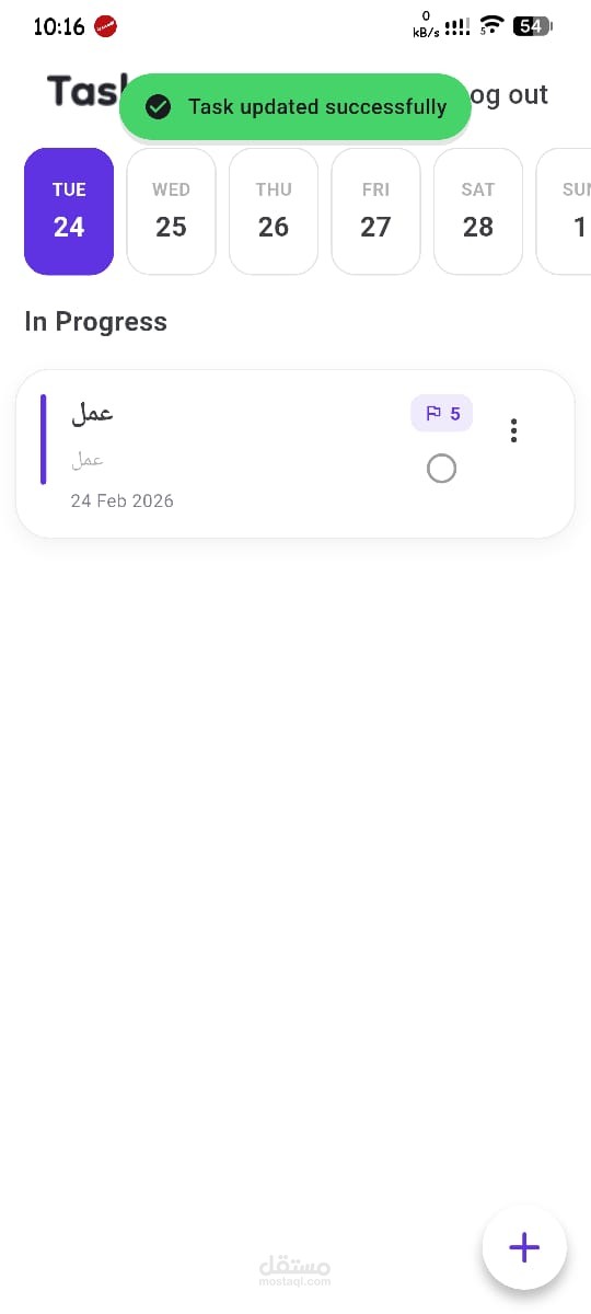 إدارة المهام (CRUD Operations): إضافة، تعديل، حذف، وإتمام المهام بسلاسة.
