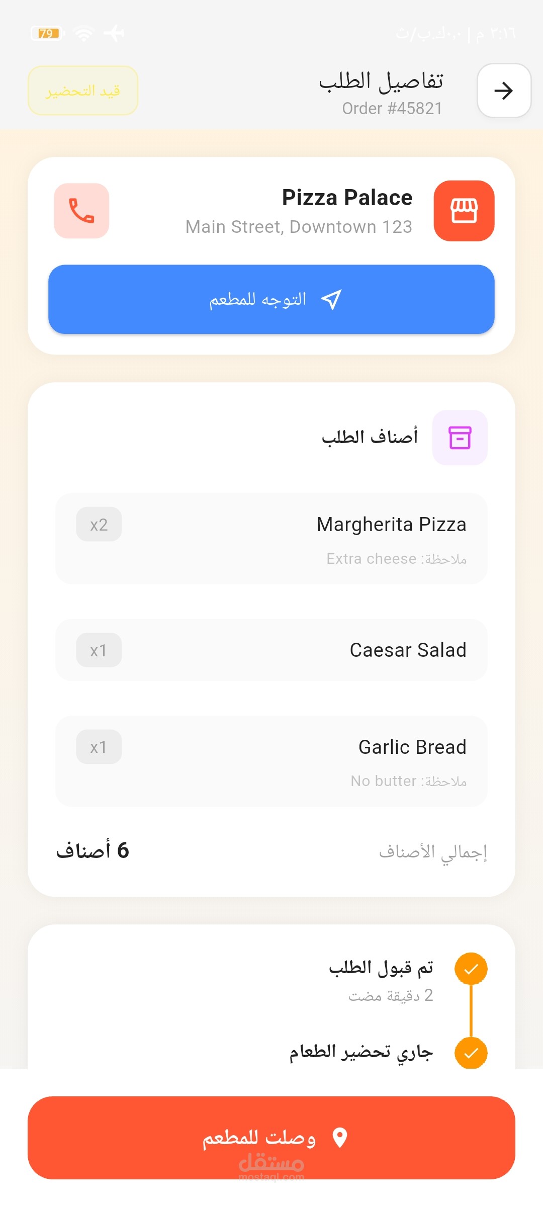 إدارة دورة حياة الطلب: تتبع كامل لعملية التوصيل من لحظة استلام الطلبية من المطعم وحتى تسليمها للعميل.