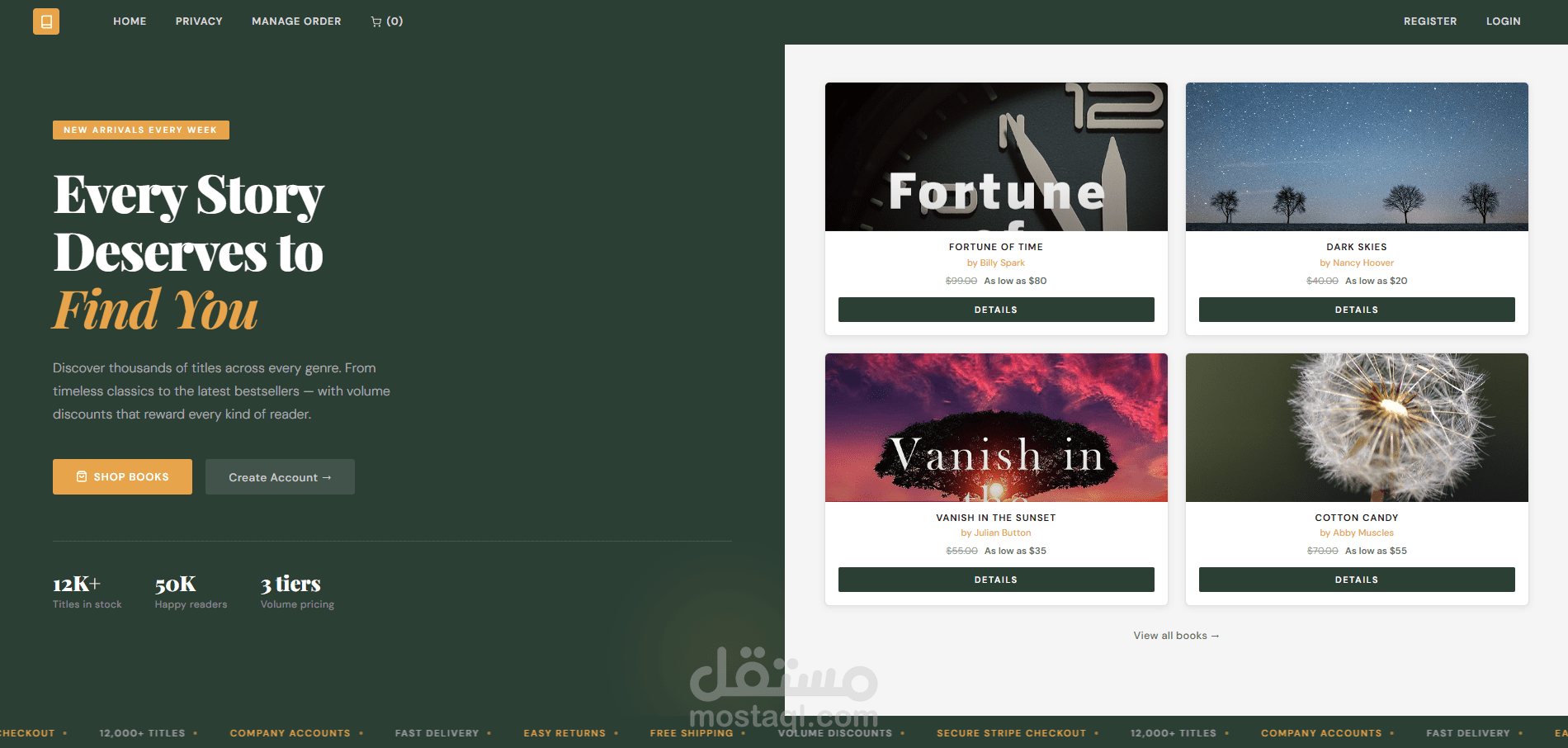 قمت بتطوير نظام متجر كتب إلكتروني متكامل باستخدام ASP.NET Core MVC، كنظام تجارة إلكترونية يشمل إدارة المنتجات، سلة المشتريات، الطلبات، والدفع الإلكتروني.