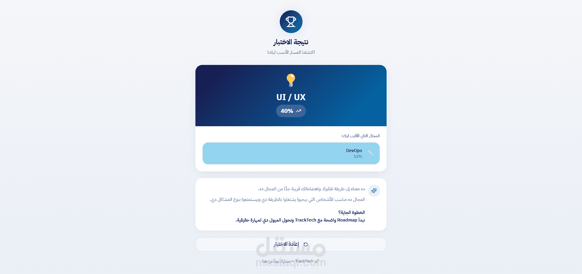 ليس مجرد Quiz تقليدي، بل نظام Recommendation مبني على منطق تقييم واضح