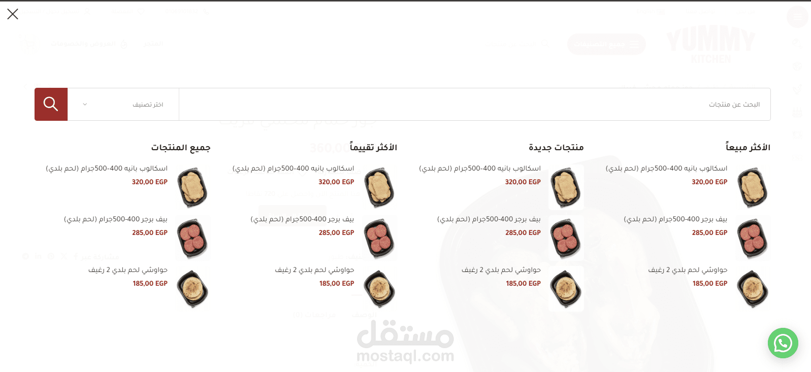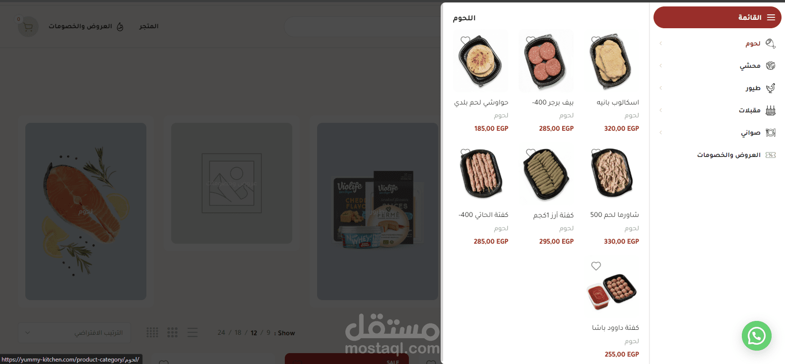 ? قسم اللحوم – مثل كفتة، شاورما، بيف برجر، إسكالوب.