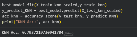 KNN → باستخدام GridSearchCV لاختيار أفضل k وmetric (acc_knn)