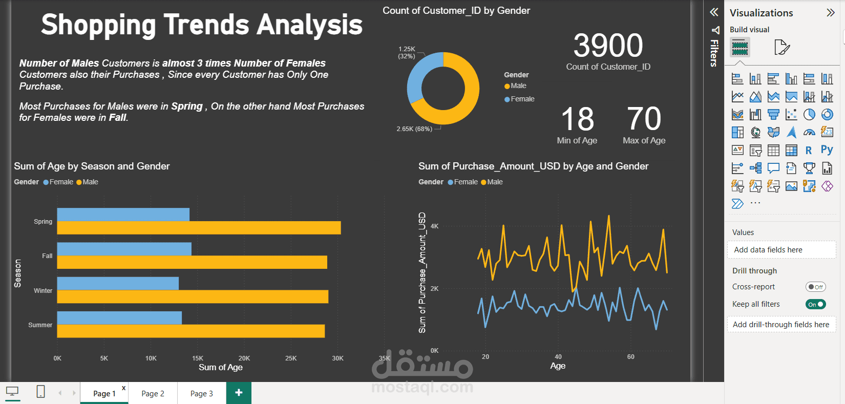 This end-to-end project explores shopping behavior trends using a real-world dataset. It covers the full data analysis pipeline — from SQL data import to dashboard visualization.