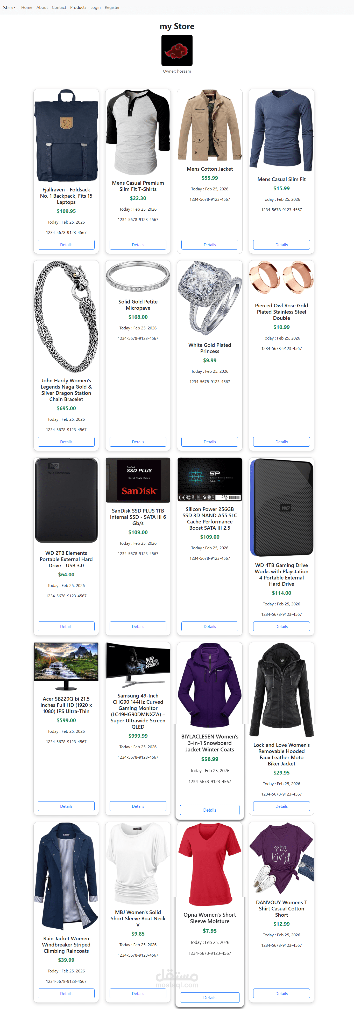 Product Catalog: A clean grid layout displaying various products with dynamic data rendering.