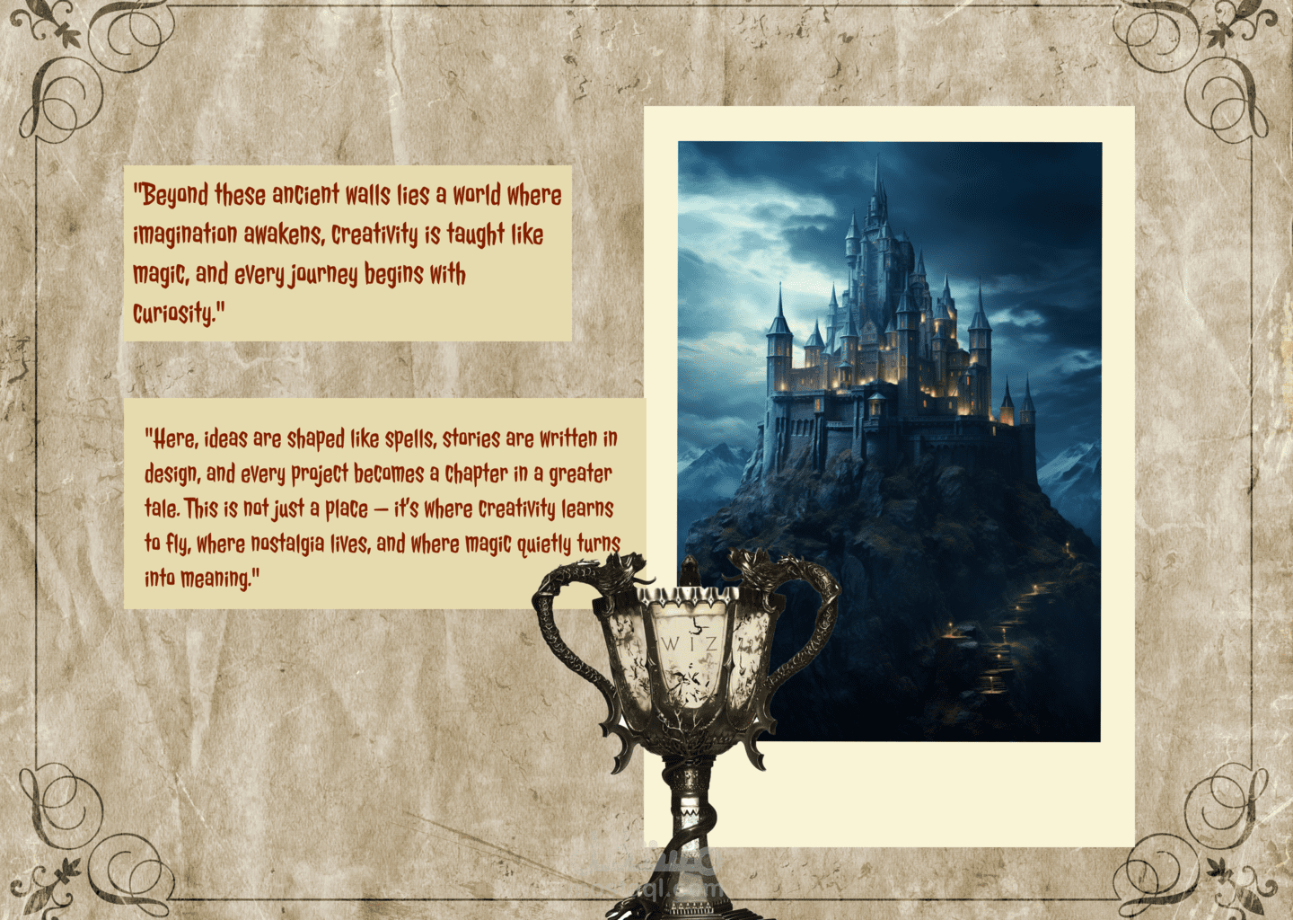 قمت بتصميم بورتفوليو إبداعي مستوحى من الطابع Retro Vintage بأجواء مستلهمة من عالم هاري بوتر، بهدف تقديم الأعمال بأسلوب يعكس الهوية الشخصية بشكل مميز واحترافي.