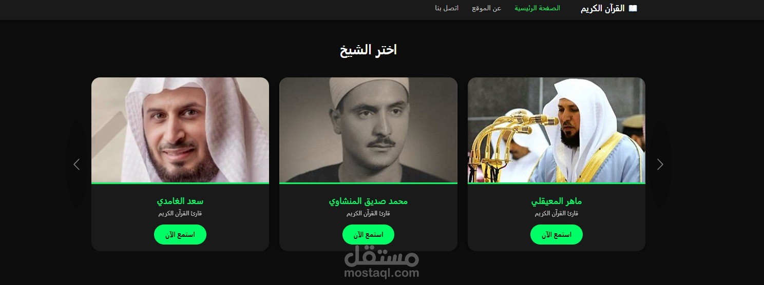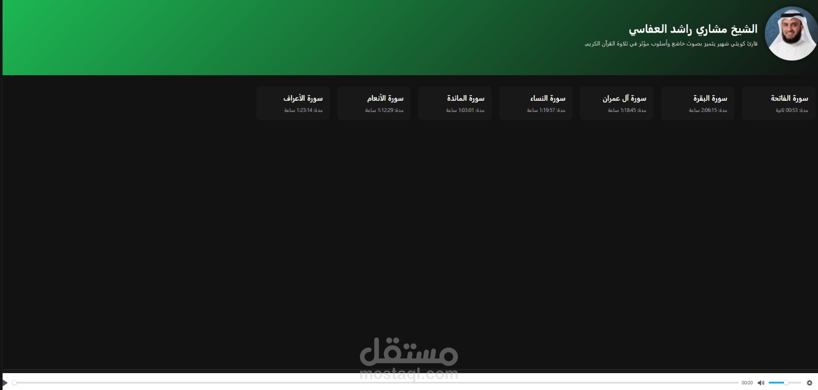 تطوير موقع ويب متجاوب لتشغيل تلاوات القرآن الكريم بعدد من القرّاء، مع واجهة مستخدم نظيفة وتجربة استخدام سهلة وسلسة.