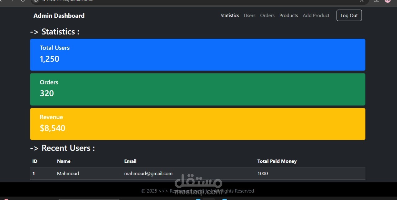 التقنيات المستخدمة: HTML، CSS، Bootstrap، PHP