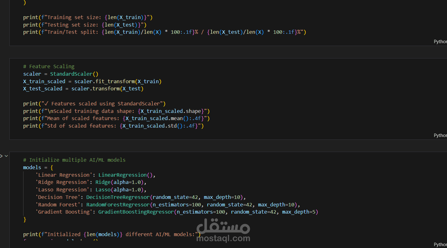 - مقاييس الأداء (R², RMSE, MAE, Accuracy, F1-Score)