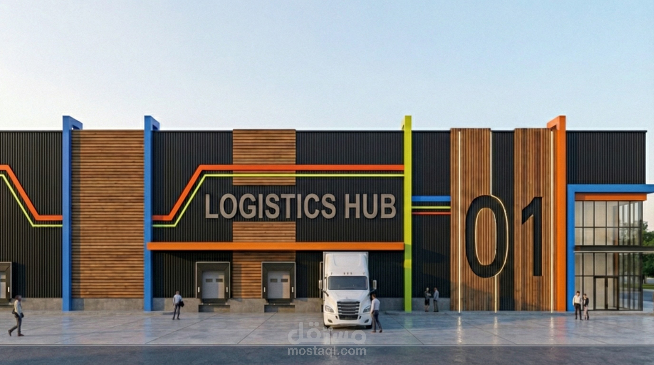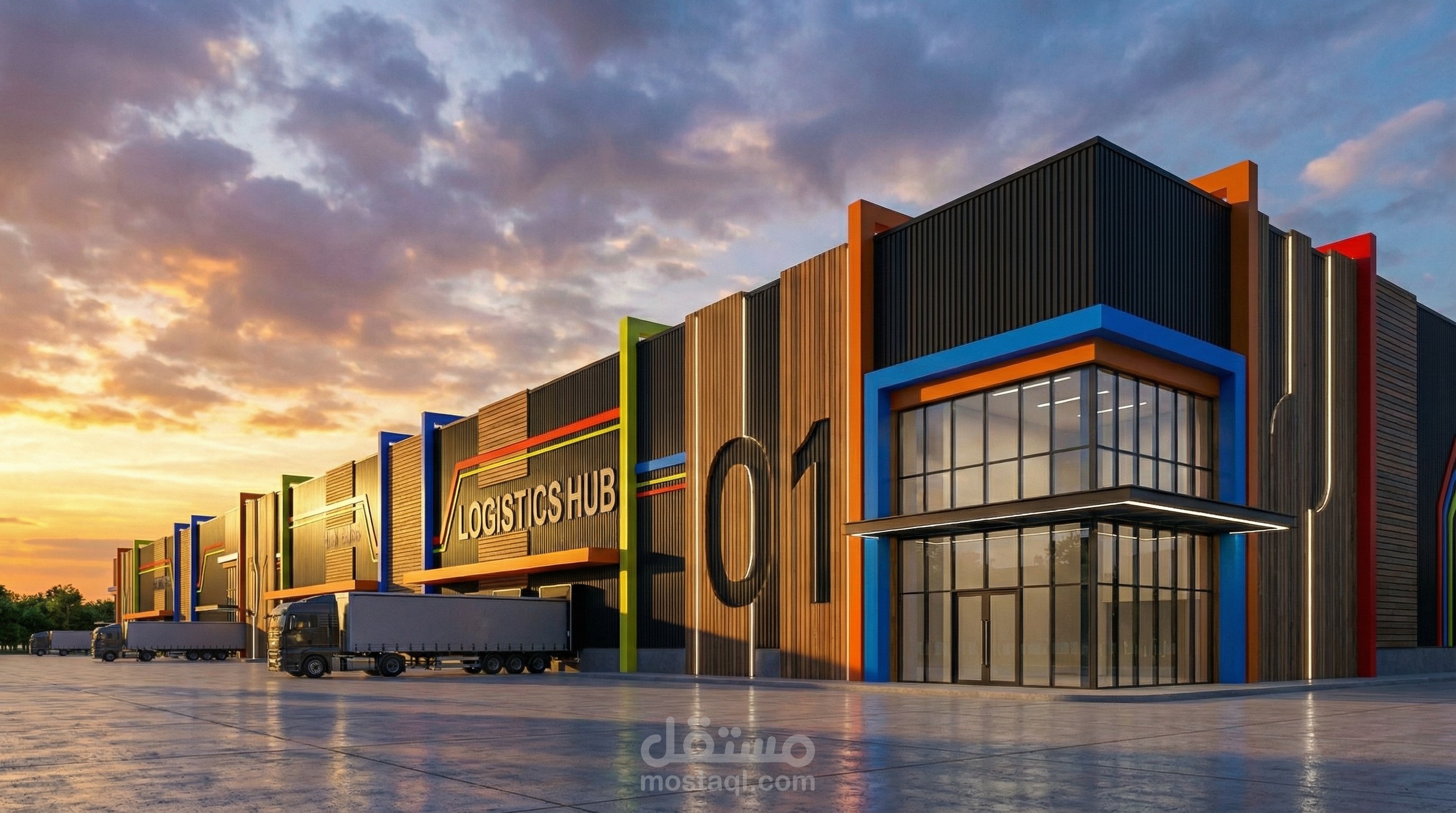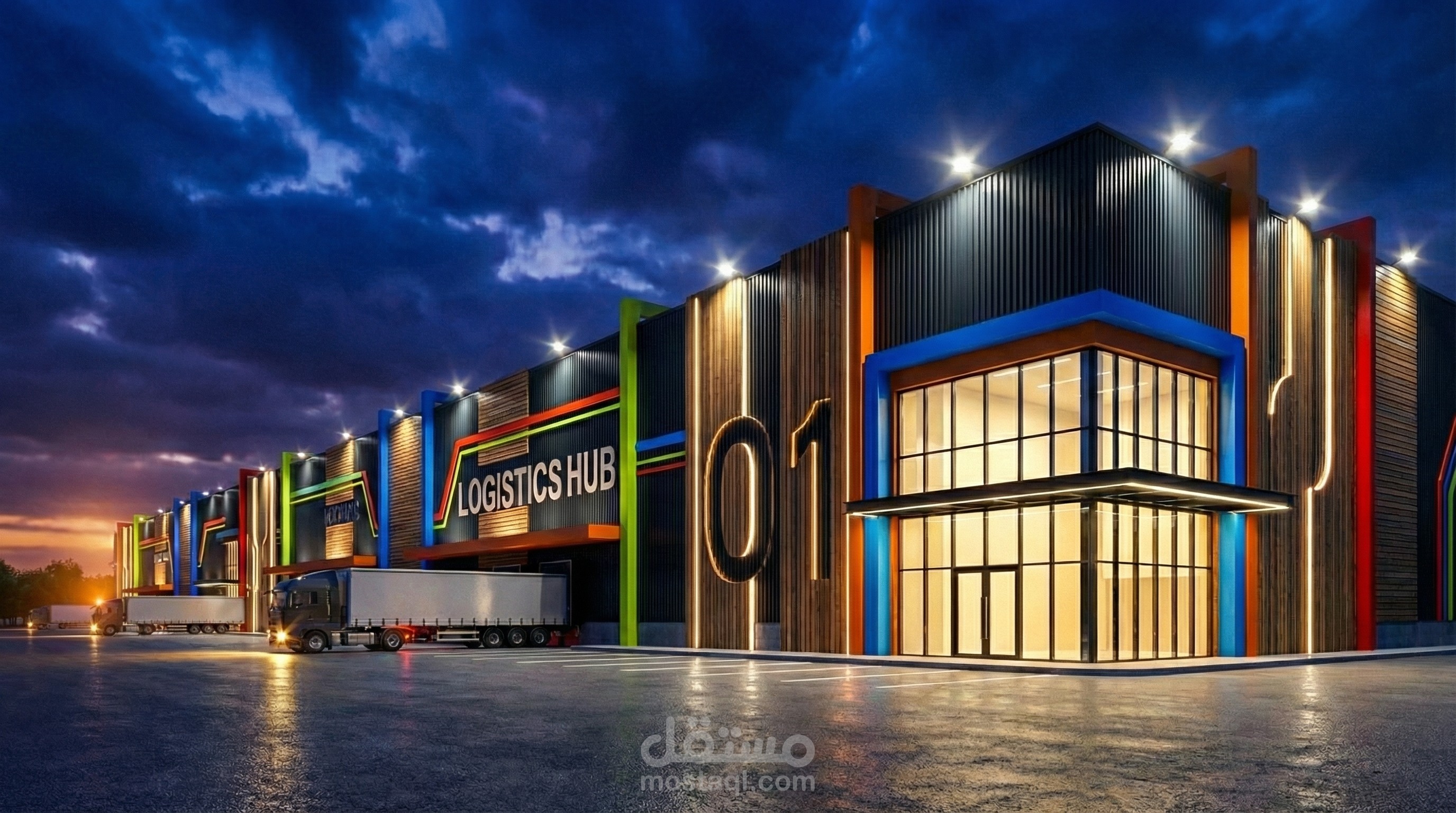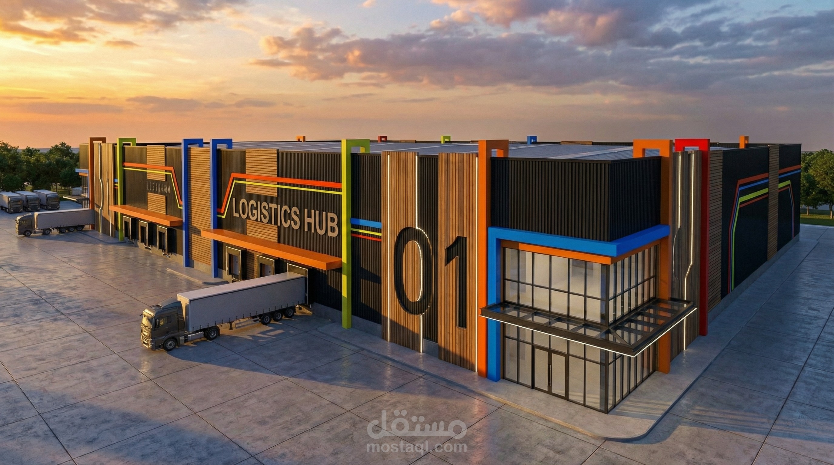 هذا المشروع عبارة عن مجمع لوجستي حديث (Logistics Hub) بتصميم صناعي معاصر يجمع بين الوظيفة والجاذبية البصرية.