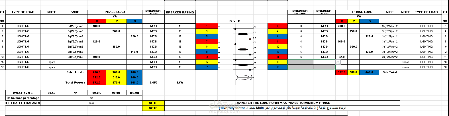 إعداد جداول الحصر (BOQ) وجدول اللوحات (Panel Schedule) وتحديد الأحمال الكهربائية لكل دائرة