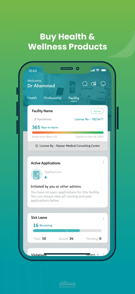 علاوة على ذلك، يتيح التطبيق للكوادر الطبية المسجلة الوصول إلى لوحات بيانات مخصصة للمهنيين والمنشآت الصحية عبر التطبيق نفسه.