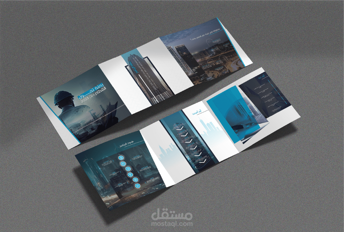 بروشور مربع الشكل: تضمن معلومات متنوعة ومكملة للتقرير، قُدمت بأسلوب أكثر مرونة وحداثة، مع الحفاظ على الاتساق البصري والهوية العامة للمشروع.