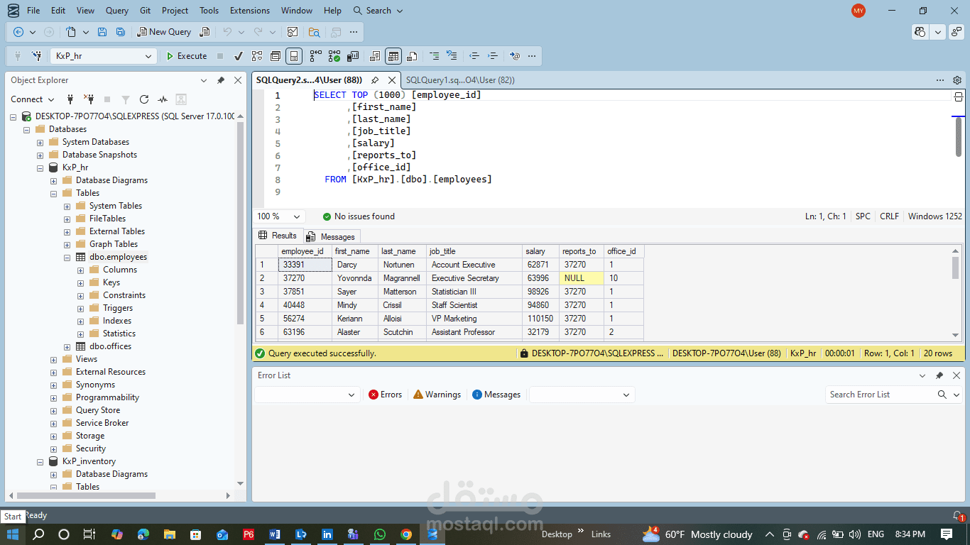 أقدم خدمة كتابة استعلامات SQL احترافية لاستخراج وتحليل البيانات من قواعد البيانات المختلفة وتحويلها إلى تقارير واضحة تدعم اتخاذ القرار.